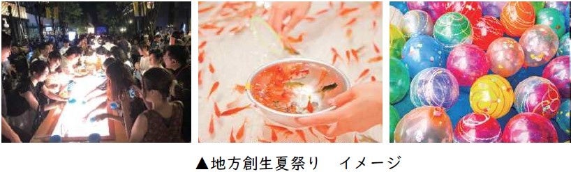 連日、レトロな席でお酒を楽しむトーキョートーチビアガーデンを開催。金曜日から日曜日には、TOKYO TORCH と連携する5つの自治体(福島県、小千谷市、つくば市、佐渡市、裾野市)の屋台が出店する縁日などを実施します。