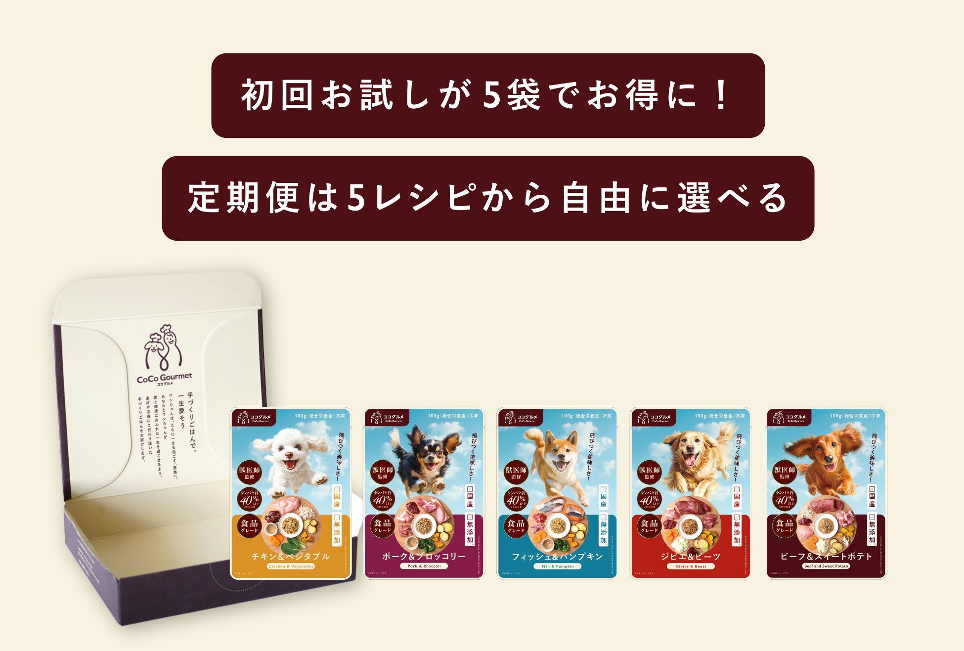 当社の手づくりごはんブランドは、人の食品を手がけてきた食のプロによって、食材・レシピ・製法に徹底的にこだわり、手作りごはんのもつ「香りとおいしさ」の再現を武器に、全国40万頭(2025年10月時点)のワンちゃん・ネコちゃんの食卓を彩ってまいりました。今回のココグルメの新商品と新改良は、これまで寄せられた愛犬の食事に悩むユーザーさまのお声と、品質に合った適切な価格、さらに嗜好性テストの結果を反映させた、まさに「愛犬家とともに作った」自信作です。