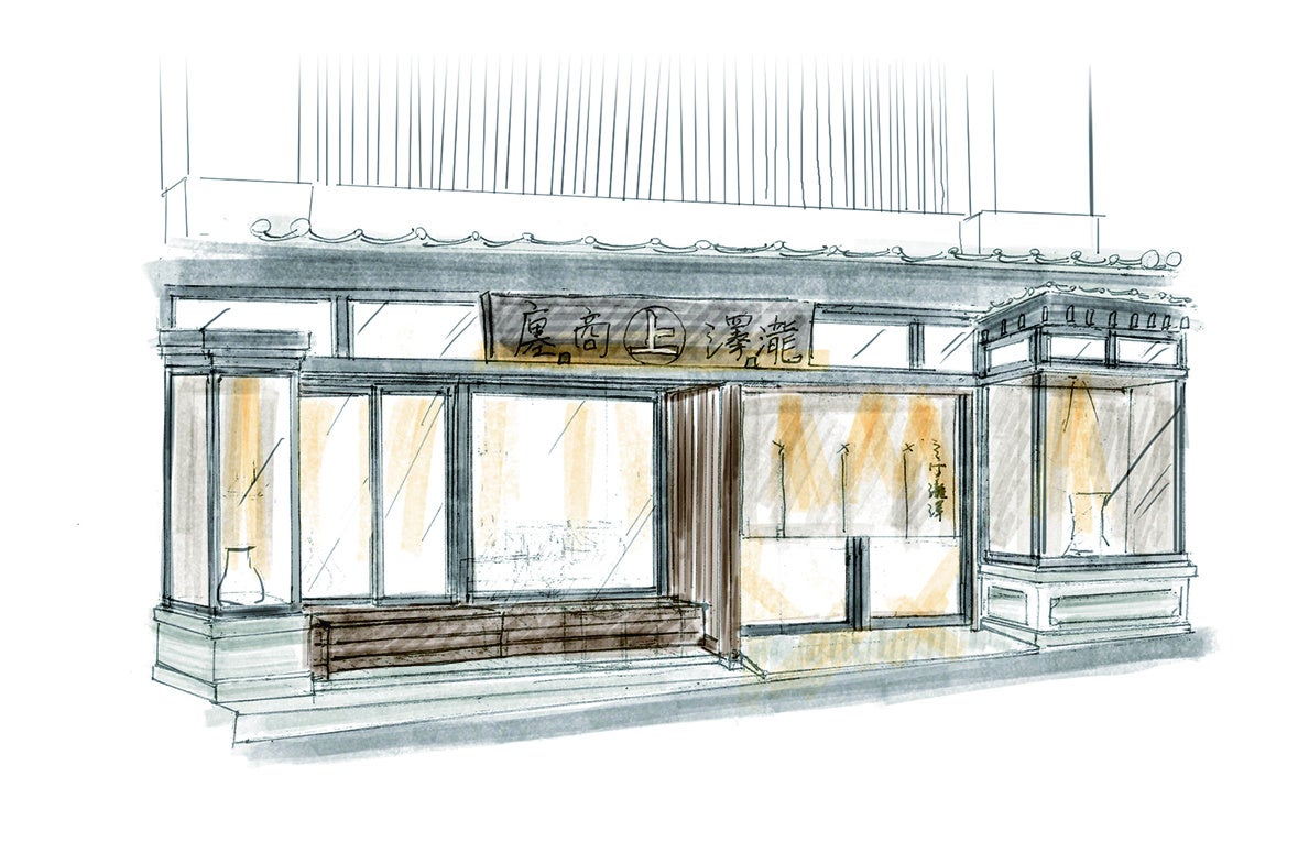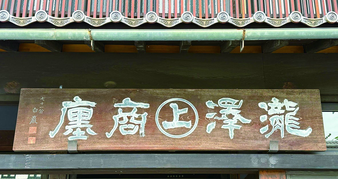 築100年以上の趣ある「たき澤」の建物は、もとは「瀧澤商店」というガラス屋さん。善光寺表参道の街並みを長年見守ってきた、歴史ある建築物です。長野県ゆかりの書道家、秋山白巖が揮毫した「瀧澤商店」の看板も当時のまま使用していま