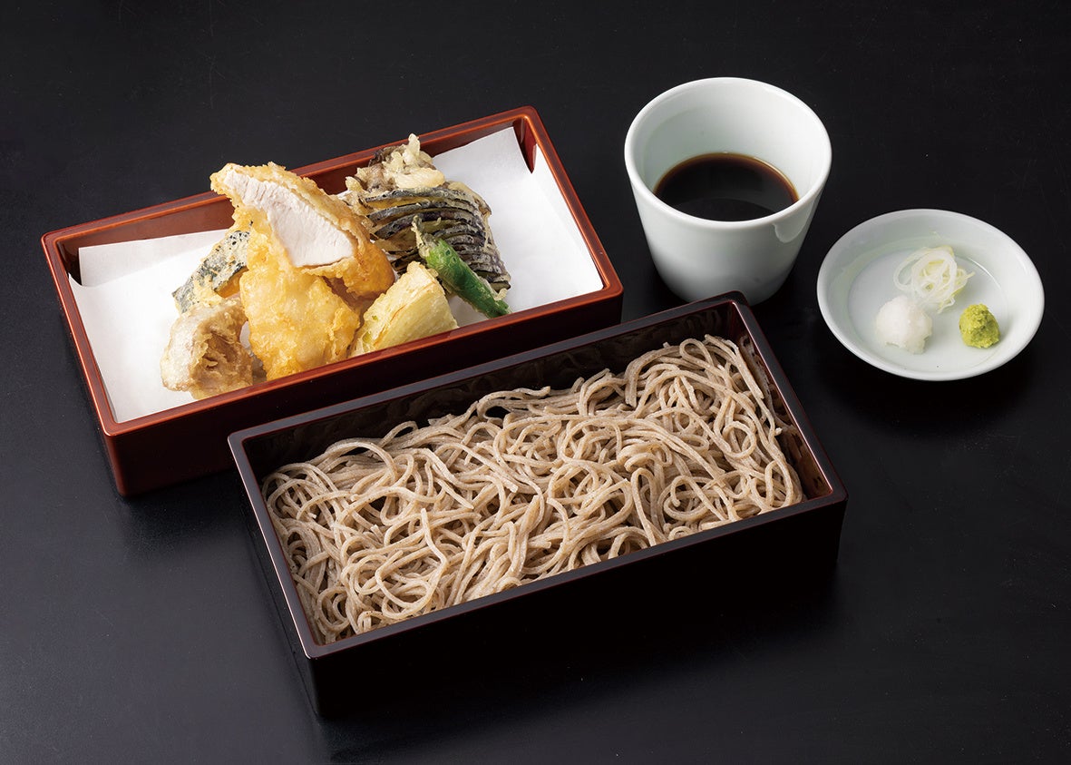 蕎麦は信州産のそば粉を中心に使用し、石臼で挽いた細めの田舎蕎麦です。また、香り高い太打ちの十割蕎麦も数量限定でご提供。信州らしい甘めのそばつゆでお召し上がりいただきます。「かしわ天せいろ」など信州の地鶏を使用した蕎麦に加え、昼は「福味鶏の親子丼」 、夜は長野県の高級地鶏「真田丸」の串焼きや「鶏の手羽先唐揚げ」などかしわの一品料理もお楽しみいただけます。長野県各地より集めた日本酒や地ビール、ワインと合わせてぜひご堪能ください。