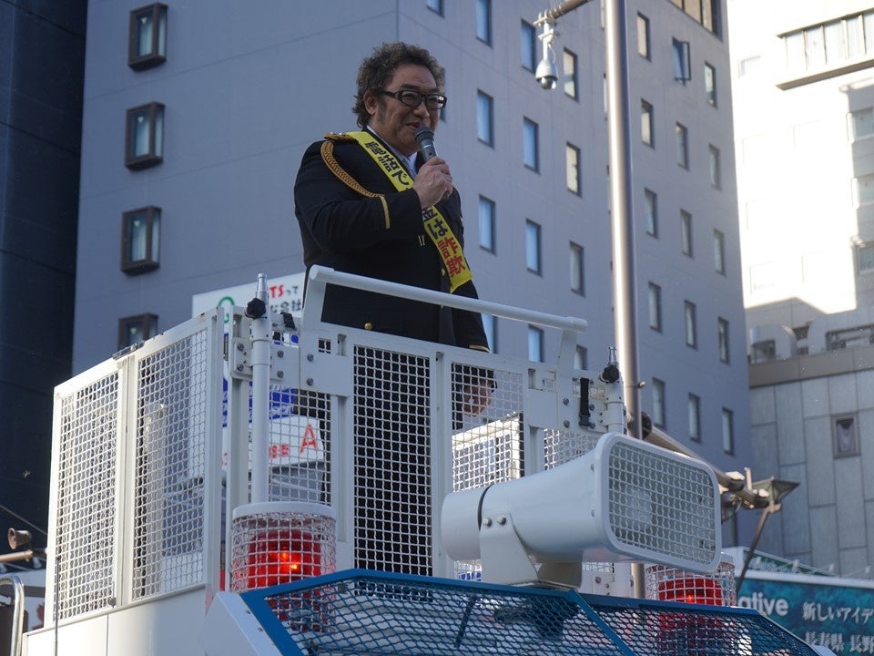 その後、長野駅前にて機動隊指揮車両の車上マイクから、DJポリス方式で「皆さん特殊詐欺とは何かご存知かと思いますが、実は去年より被害件数と被害額が増えております。手口としては、オレオレ詐欺も多いですが、最近では還付金詐欺と架空料金請求詐欺が増えています。還付金詐欺とは、市役所職員をかたって保険料の還付金があるといってATM操作をさせるもので、架空料金請求詐欺はインターネットの未納料金が発生しているなどの名目で、携帯電話にショートメッセージ(SMS)が送られたり、法務省や裁判所などの名称で自宅にはがきが送付される