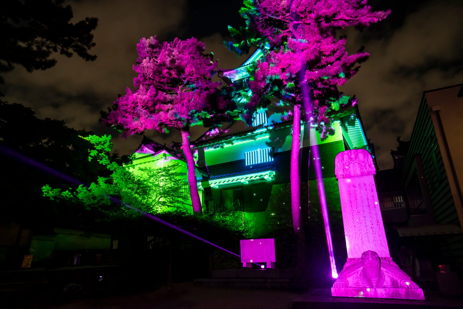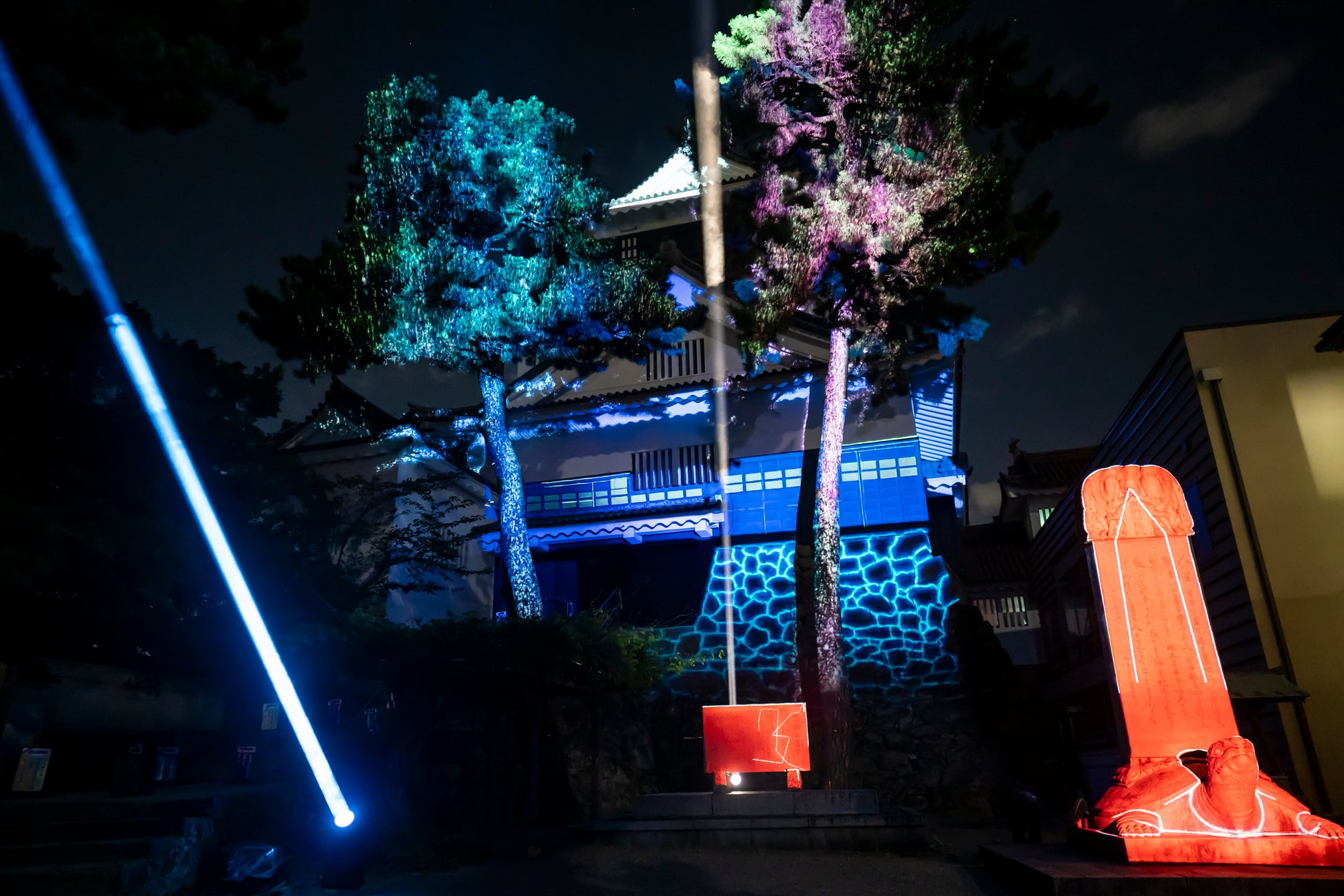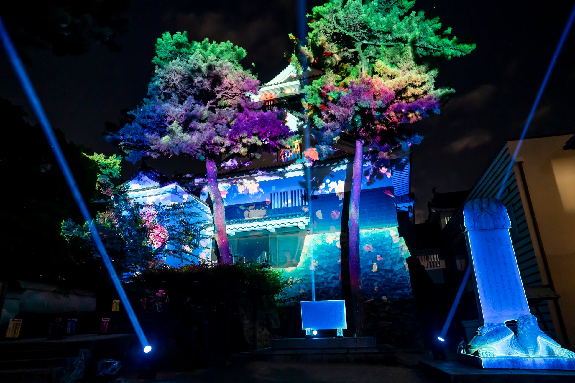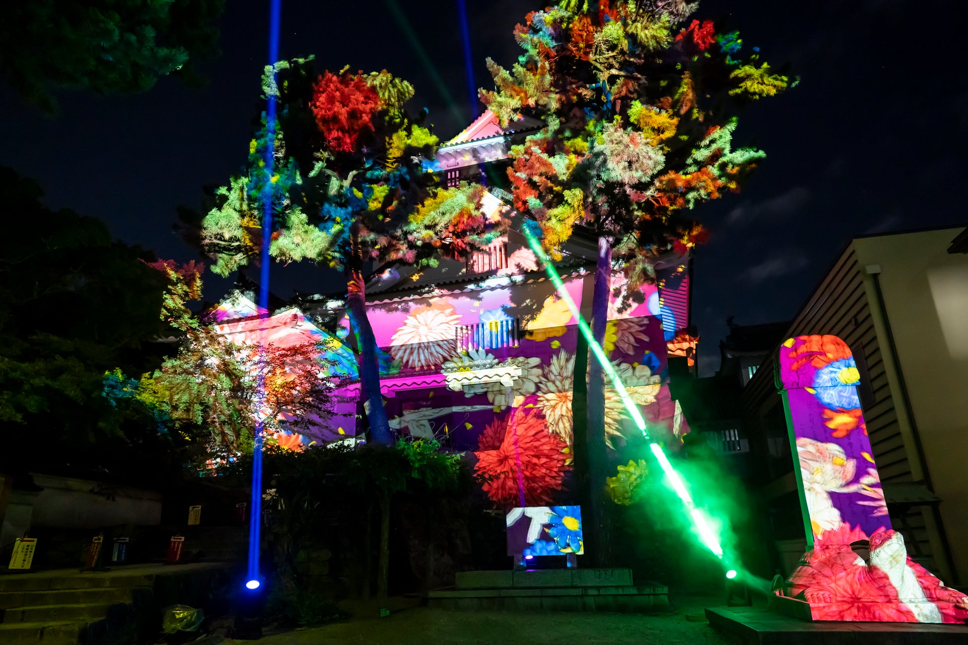 【開催中】一旗プロデュース「岡崎城下家康公夏まつり 岡崎城天守閣 プロジェクションマッピング 2023」を愛知県岡崎市で開催。徳川家康生誕の地・岡崎城の夜をデジタルアートが彩る。公式写真を公開。