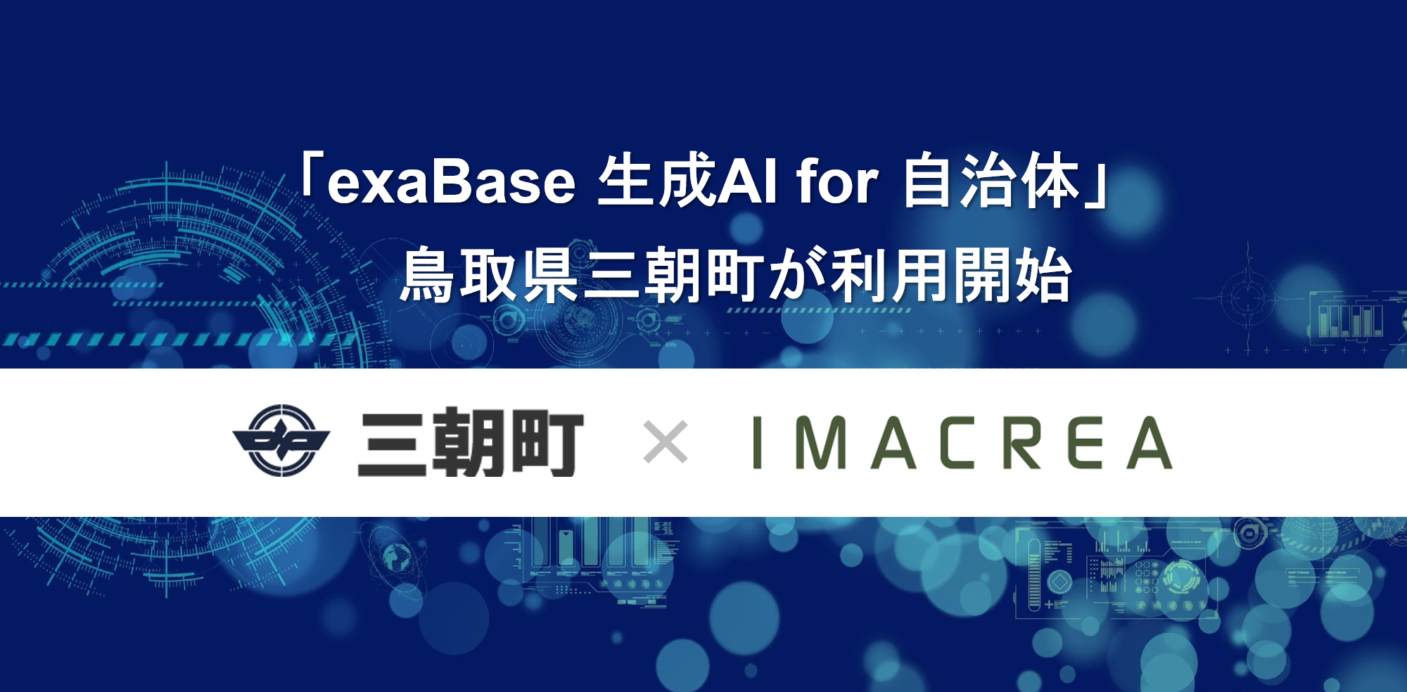 株式会社イマクリエ(本社:東京都港区、代表取締役:鈴⽊信吾、以下、当社)は、鳥取県三朝町において「exaBase 生成AI for 自治体」の提供を開始し、正式に運用を開始しました。