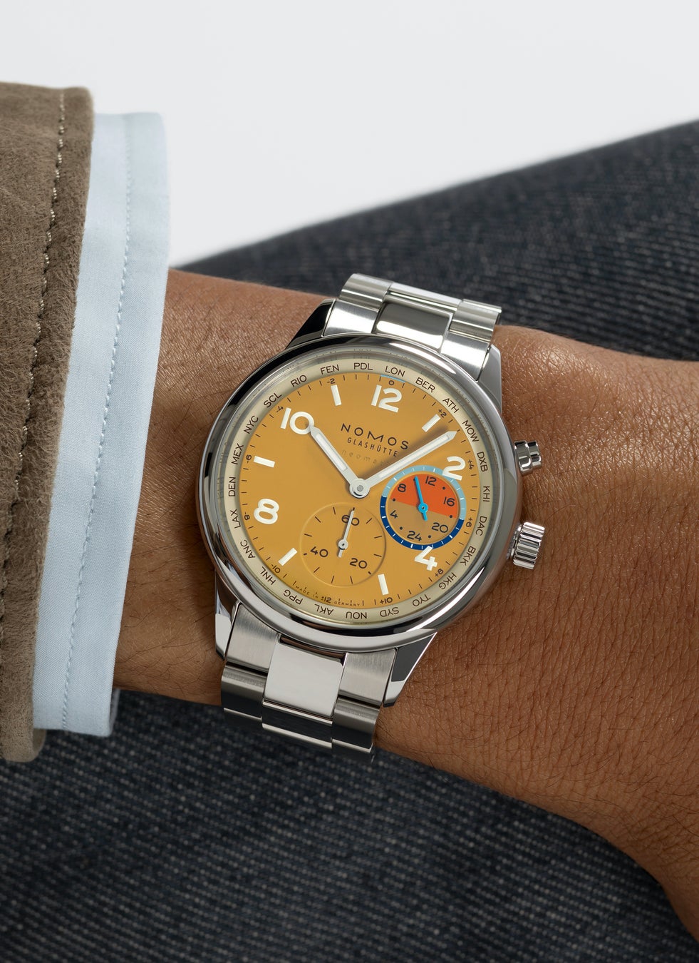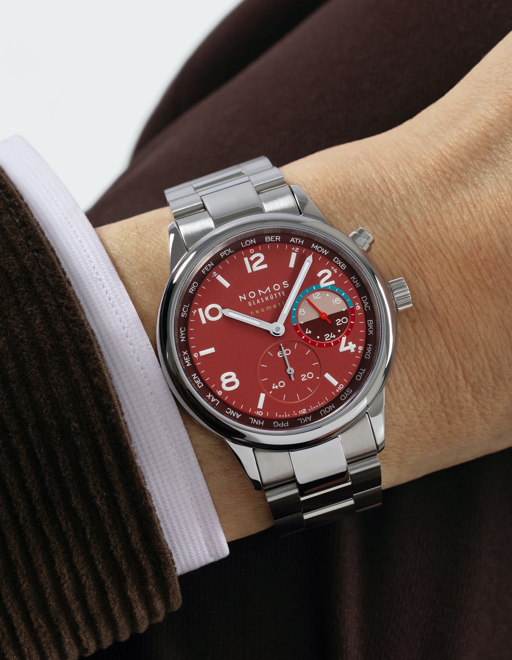 ノモス自社製自動巻きキャリバー、ワールドタイム、24 時間と昼夜の表示