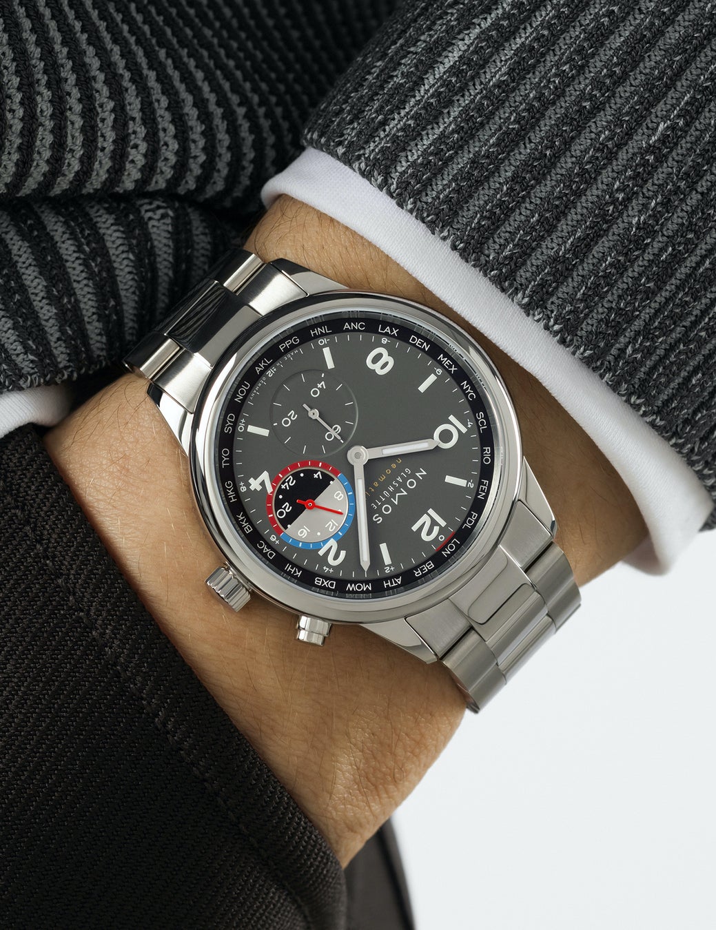 2025年春 、「Watches and Wonders Geneva 2025」で話題となったノモス グラスヒュッテの新作スポーツウオッチ「クラブ スポーツ ネオマティック ワールドタイマー」。