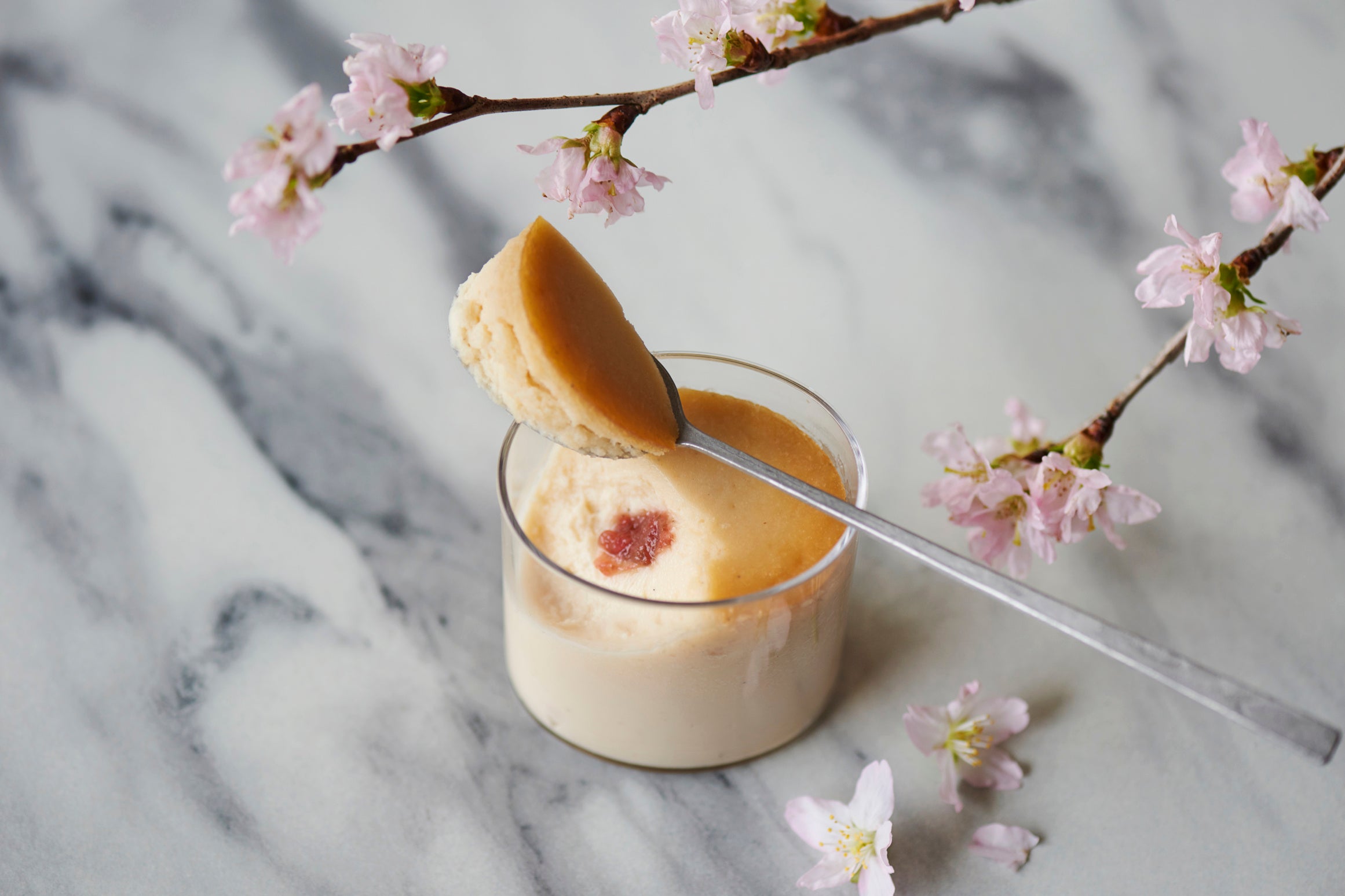桜の甘く優しい香りが広がるフレーバー。桜のペーストと赤スグリを合わせた程よい酸味のチーズケーキに、桜の塩漬けとリュバーブの甘く香り高いコンフィチュールを忍ばせ、桜の豊かな香りを存分に引き立てました。ほんのりピンク色に色づいた見た目からも春の穏やかな陽気をお楽しみください。