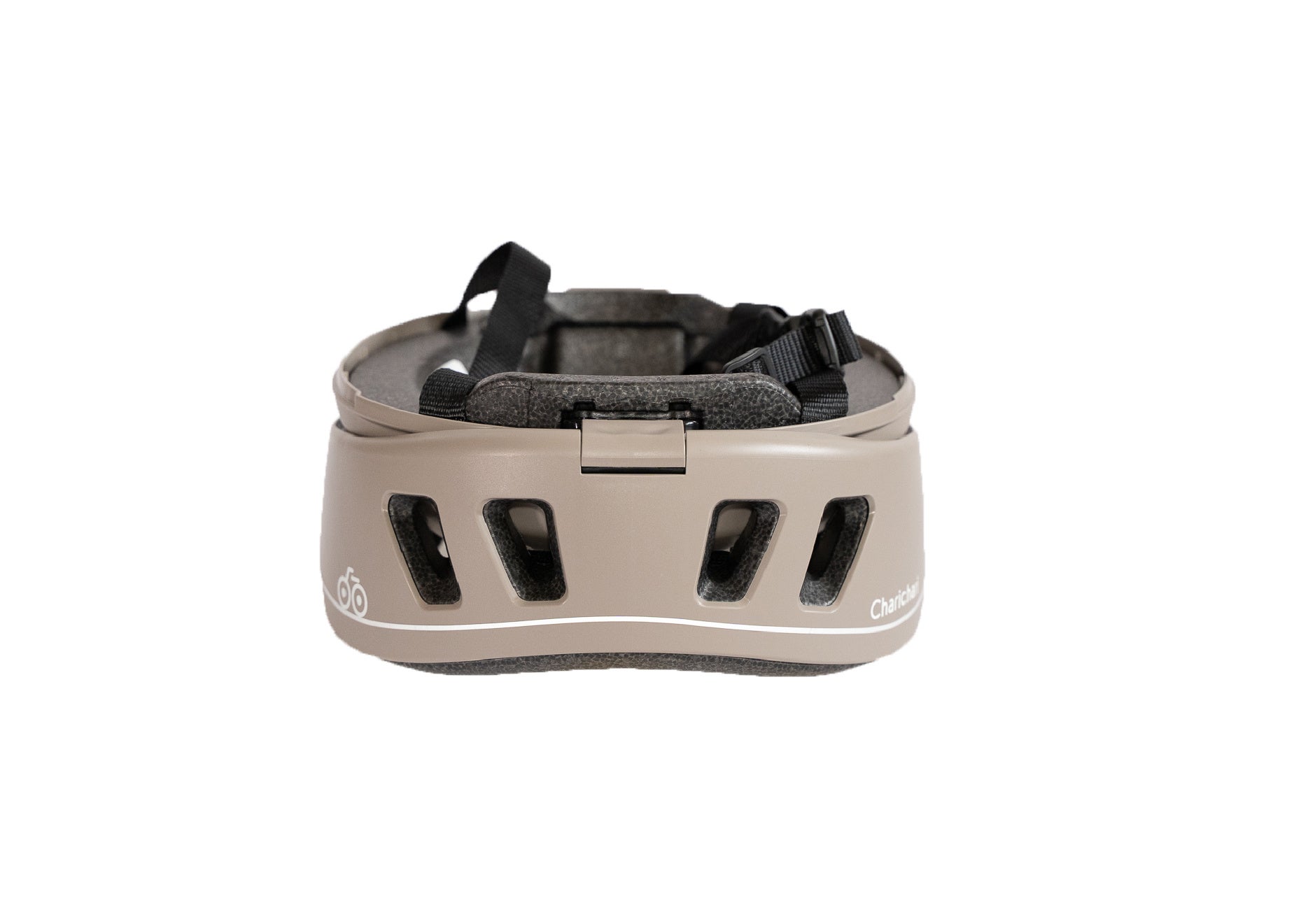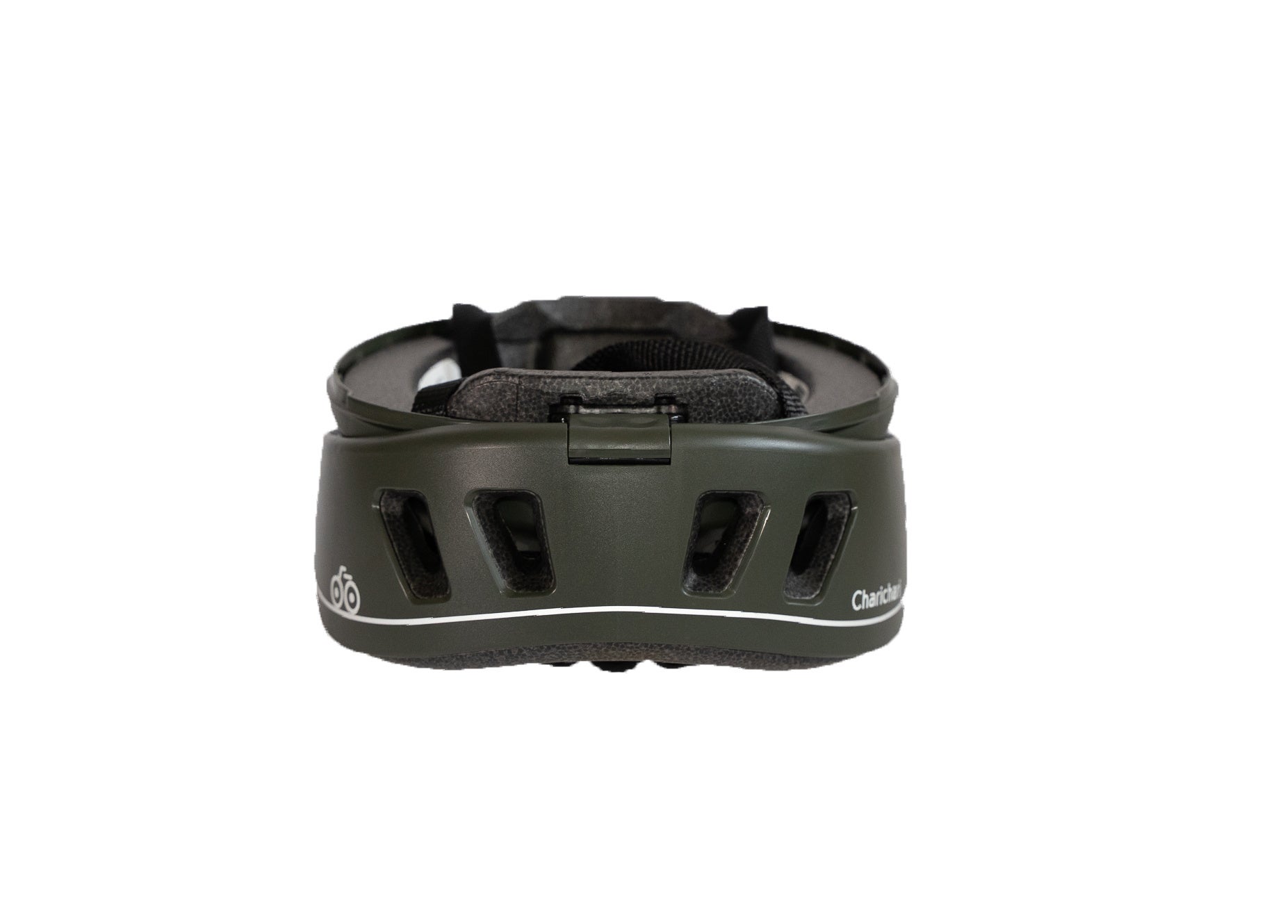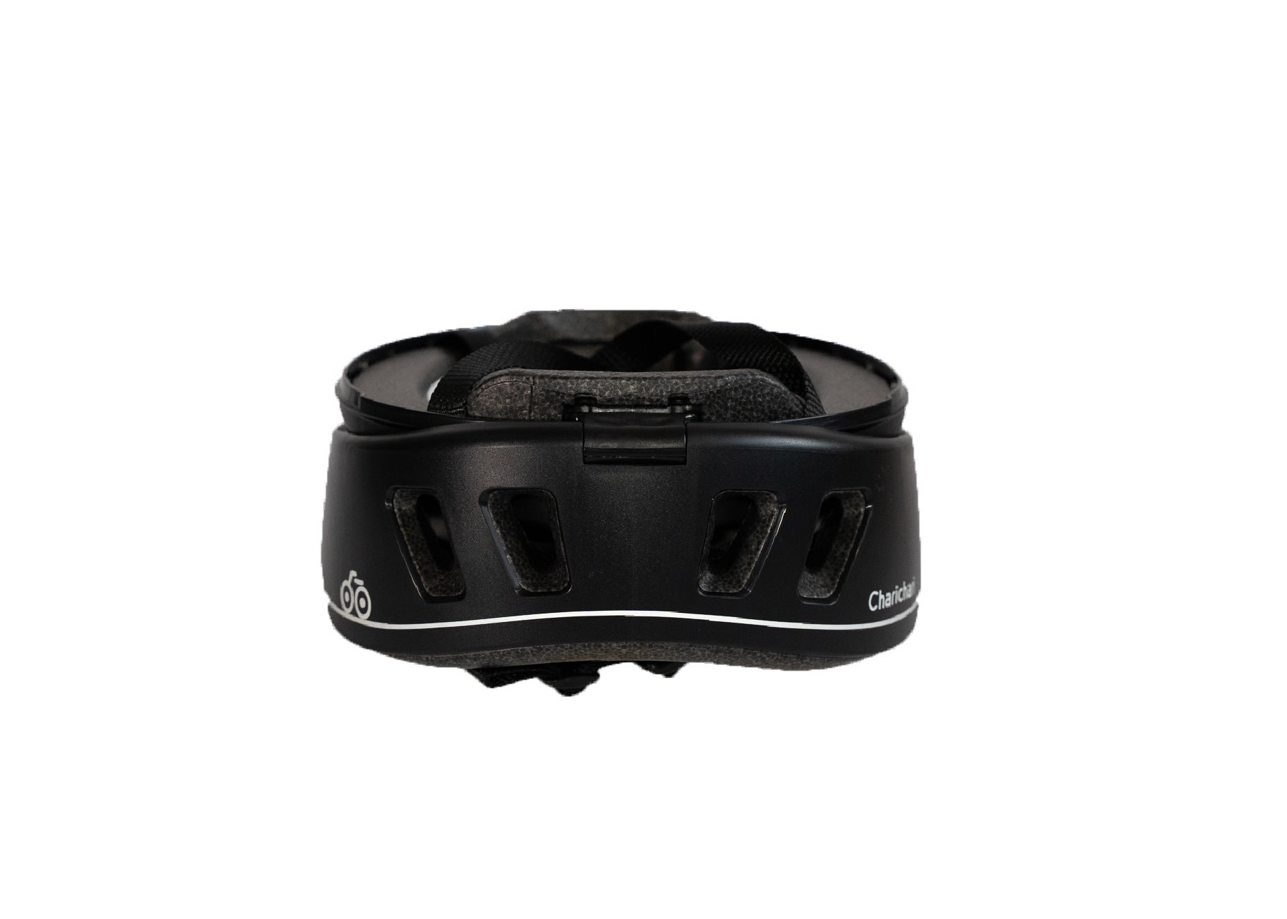 通勤通学のスーツからカジュアルな服にも似合う落ち着いたカラーに、さりげなくチャリチャリの可愛いロゴマークが施されたデザインのヘルメットです。チャリチャリのロゴマークとラインは反射材で、夜間の自転車運転にも安心です。