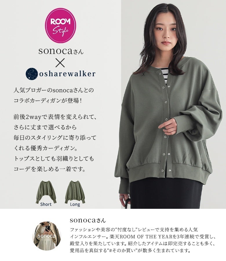 楽天ROOMインフルエンサーsonocaさんとのコラボアイテム発売!選べる”2つ“の要素で毎日のスタイリングに大活躍のカーディガンが10月5日(日)発売開始しました!【オシャレウォーカー】