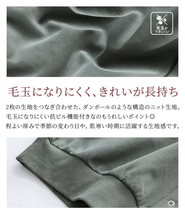 毛玉になりにくい理由は、抗ビル機能付きの素材でできた、ニット生地にあります。