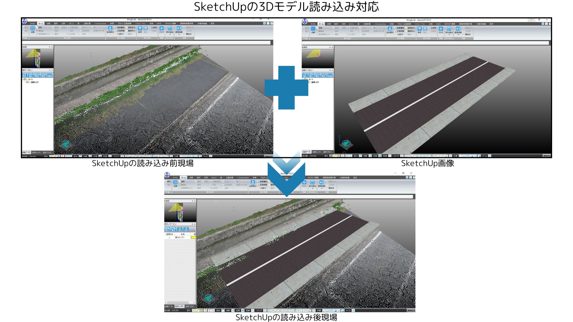 ① INFINITY連携の強化(地上レーザ測量システムを用いた3次元点群合成マニュアル対応)