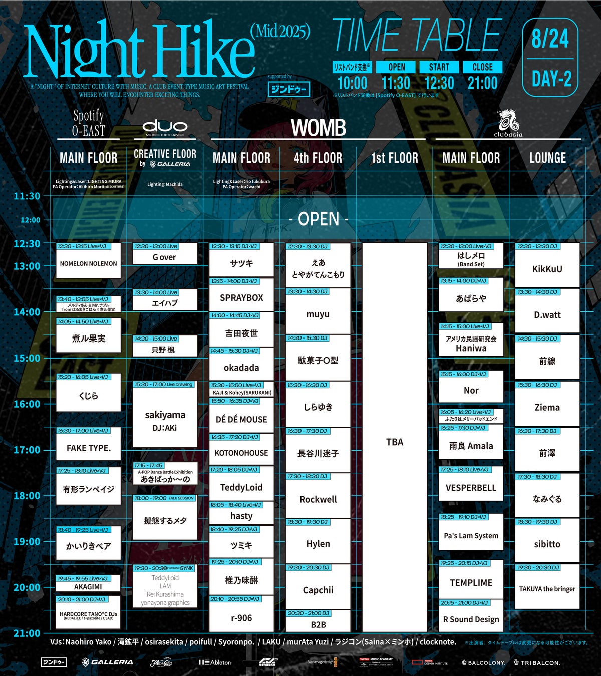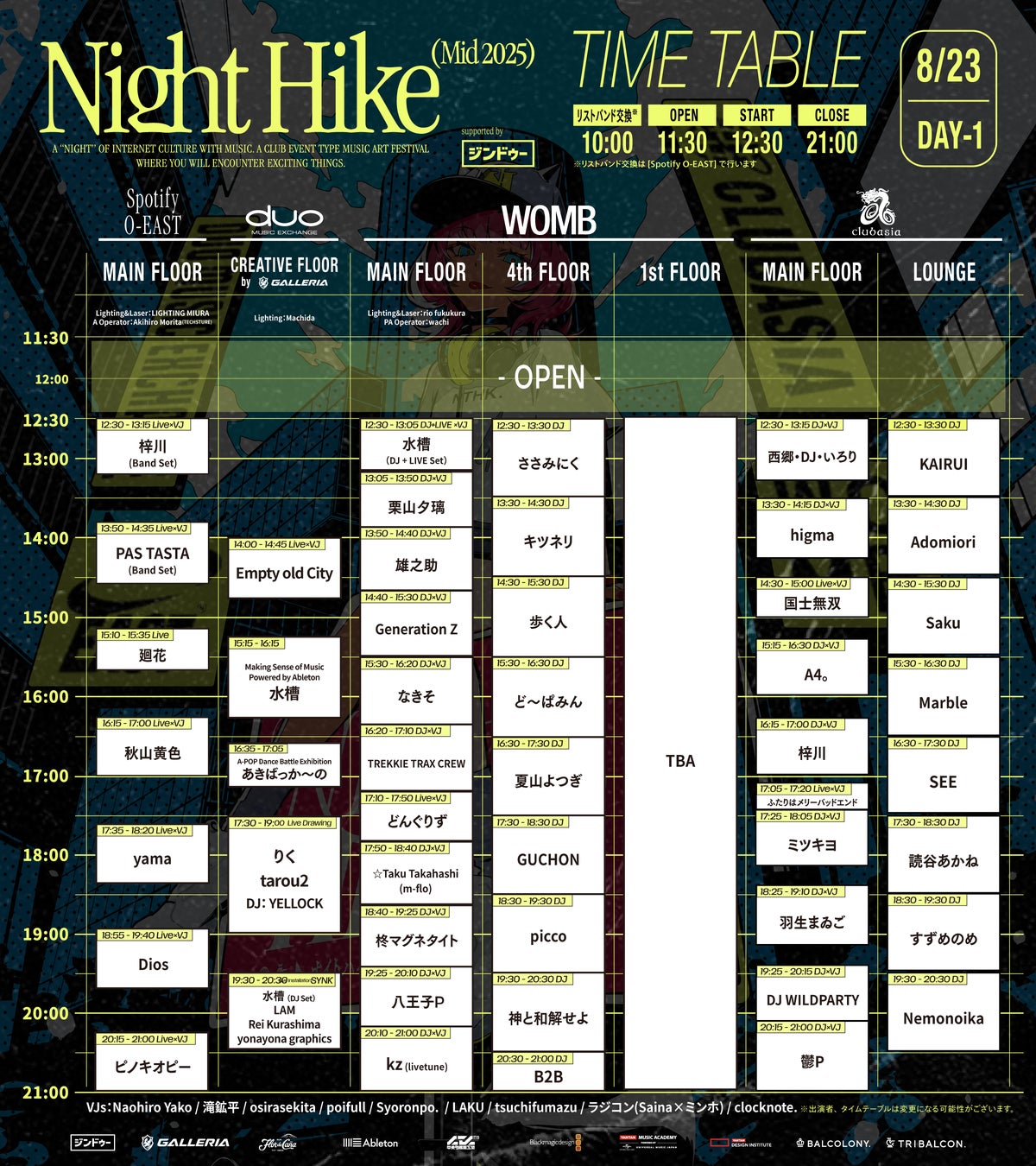 「NIGHT HIKE Mid 2025 supported by ジンドゥー」タイムテーブル公開 & 追加ラインナップ発表!