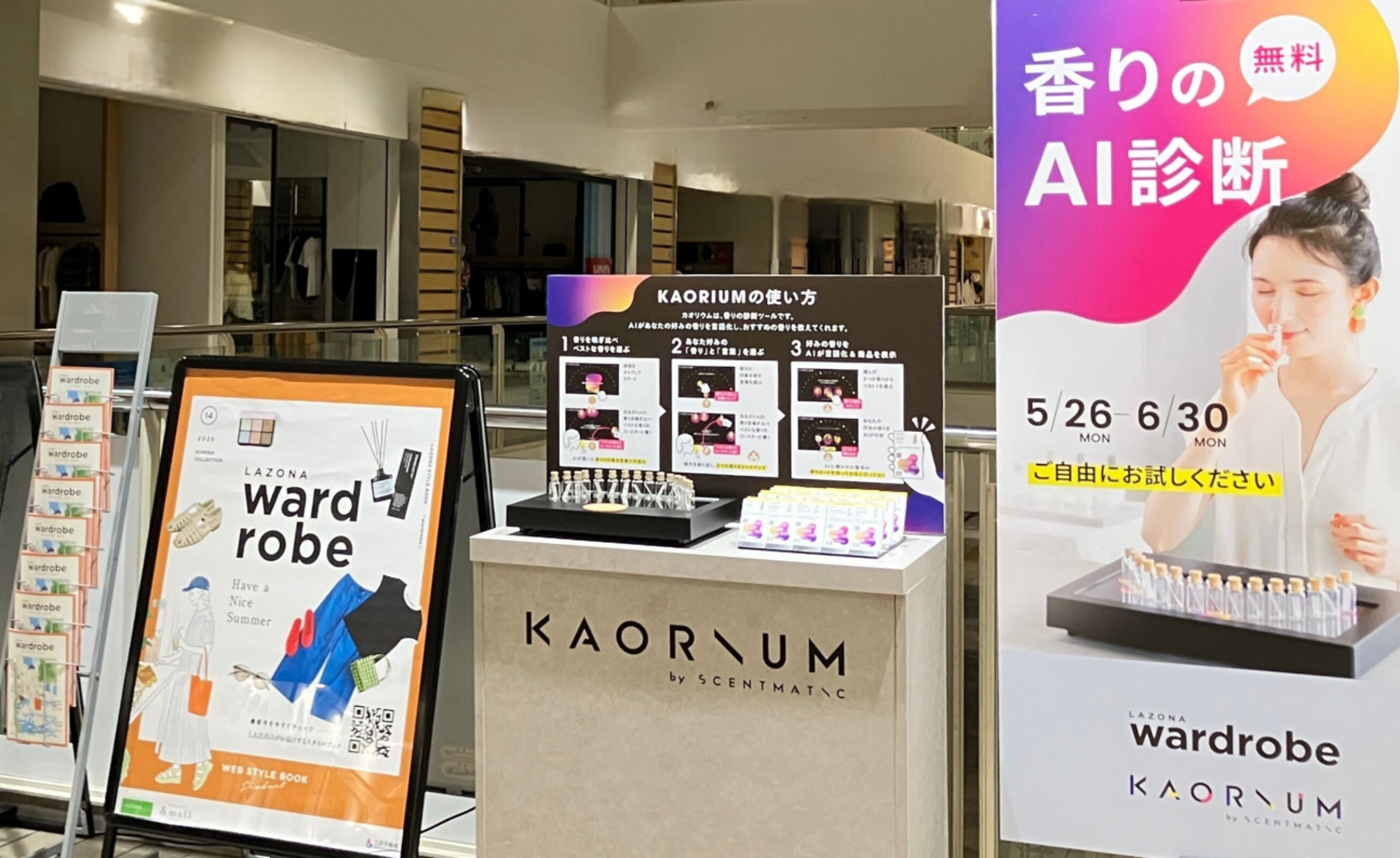 セントマティックは、LAZONA STYLE BOOK『wardrobe』とコラボして期間限定で「KAORIUM」を設置。香りを言語化するAI「KAORIUM」を通じて、来場者一人ひとりの香りの好みや印象を可視化・言語化し、それぞれの感性に寄り添ったフレグランスアイテムをご提案。香りと言葉をつなぐ体験を通して、新たな感性と出会うきっかけを提供します。また会場にて、フレグランス特集を掲載した『wardrobe』最新号も配布中です。お気に入りの香りが見つかれば各店舗にて購入することもできます。ラゾーナ川崎プラザというアクセスの良い立地で開催される本イベントは、ショッピングやお出かけの合間に、香り選びの体験を気軽にお楽しみいただけます。ぜひ、この機会にお立ち寄りください。