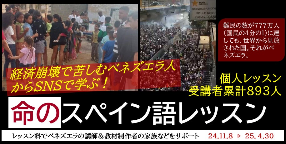 「不運な境遇」に生まれたベネズエラの人たちを少しでも助けようと、途上国・国際協力に特化したNPOメディアの「ganas」(運営:NPO法人開発メディア)が4年半前に立ち上げたwin-winのプログラムが、経済崩壊で生活苦に陥るベネズエラ人から学ぶ『命のスペイン語レッスン』です。13期生の募集をこのほどスタートします。