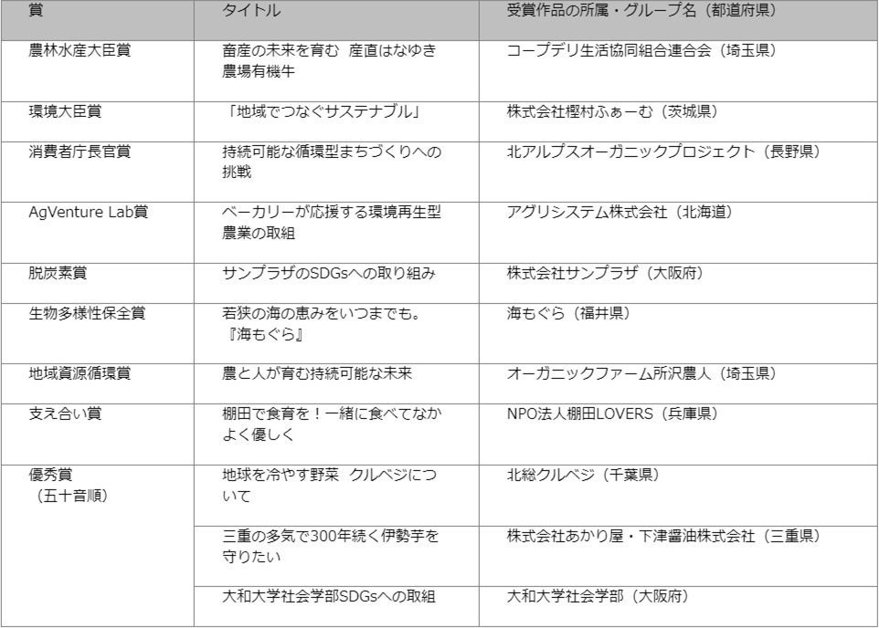 受賞作品は、以下の通りです。動画は、農林水産省ホームページで公開します。
