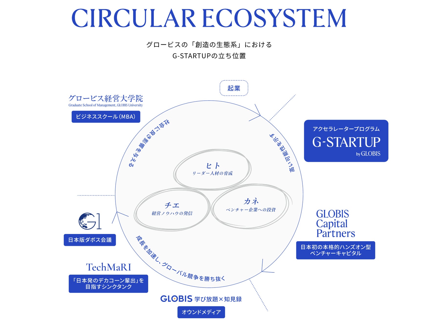 グロービスグループが有する「ヒト・カネ・チエ」のエコシステムを最大限に活用した支援を象徴すべく、グロービスのコーポレートロゴや、スタートアップ支援の中核を担うグロービス・キャピタル・パートナーズのロゴを踏襲したデザインへと刷新しました。