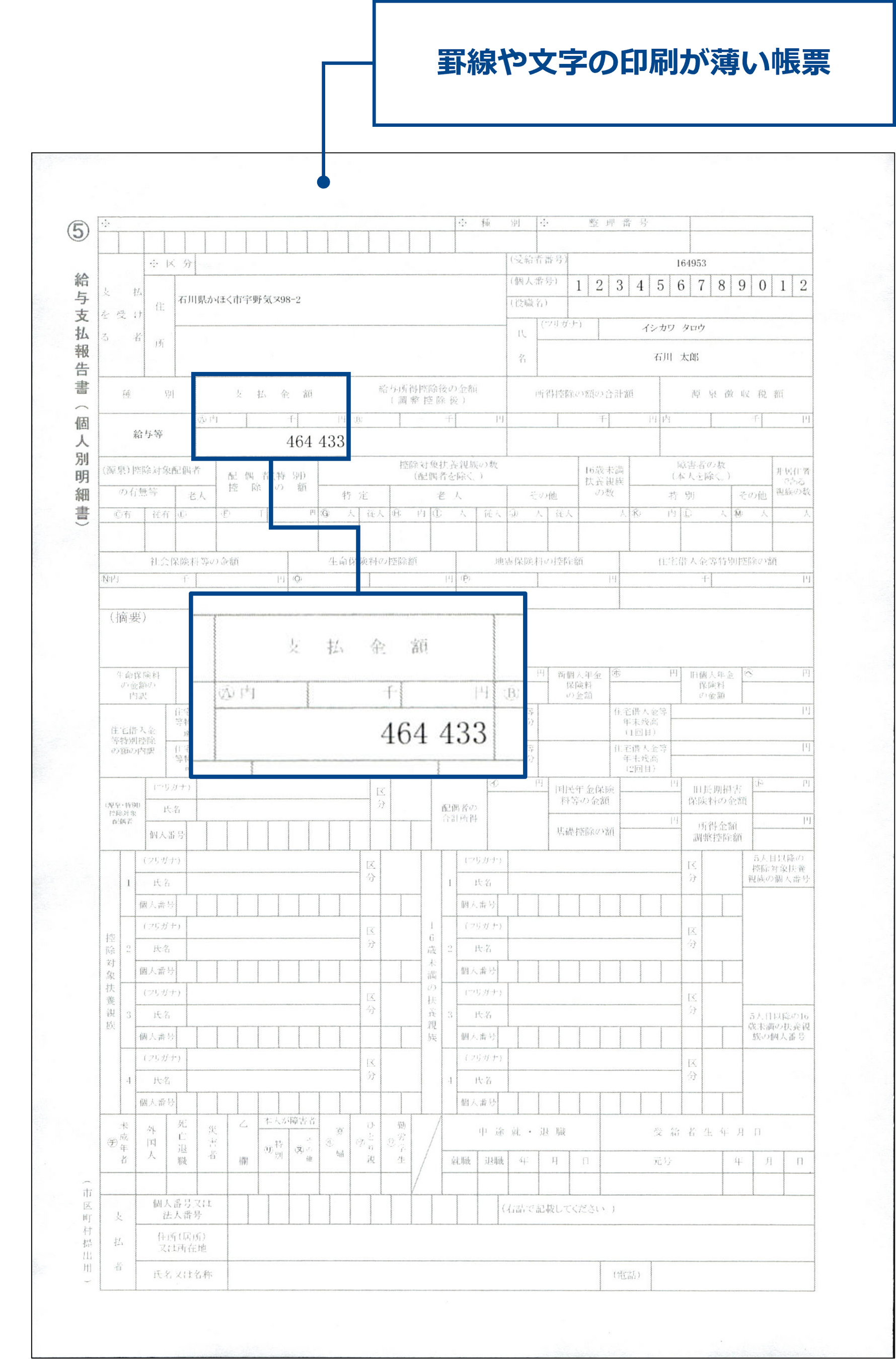 注4 大きくゆがんだ帳票、著しくかすれた文字は認識できないことがあります。