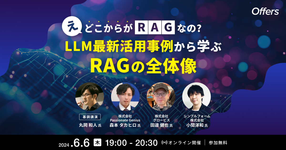 6/6(木)19:00~「え、どこからがRAGなの? LLM最新活用事例から学ぶ RAGの全体像」を開催