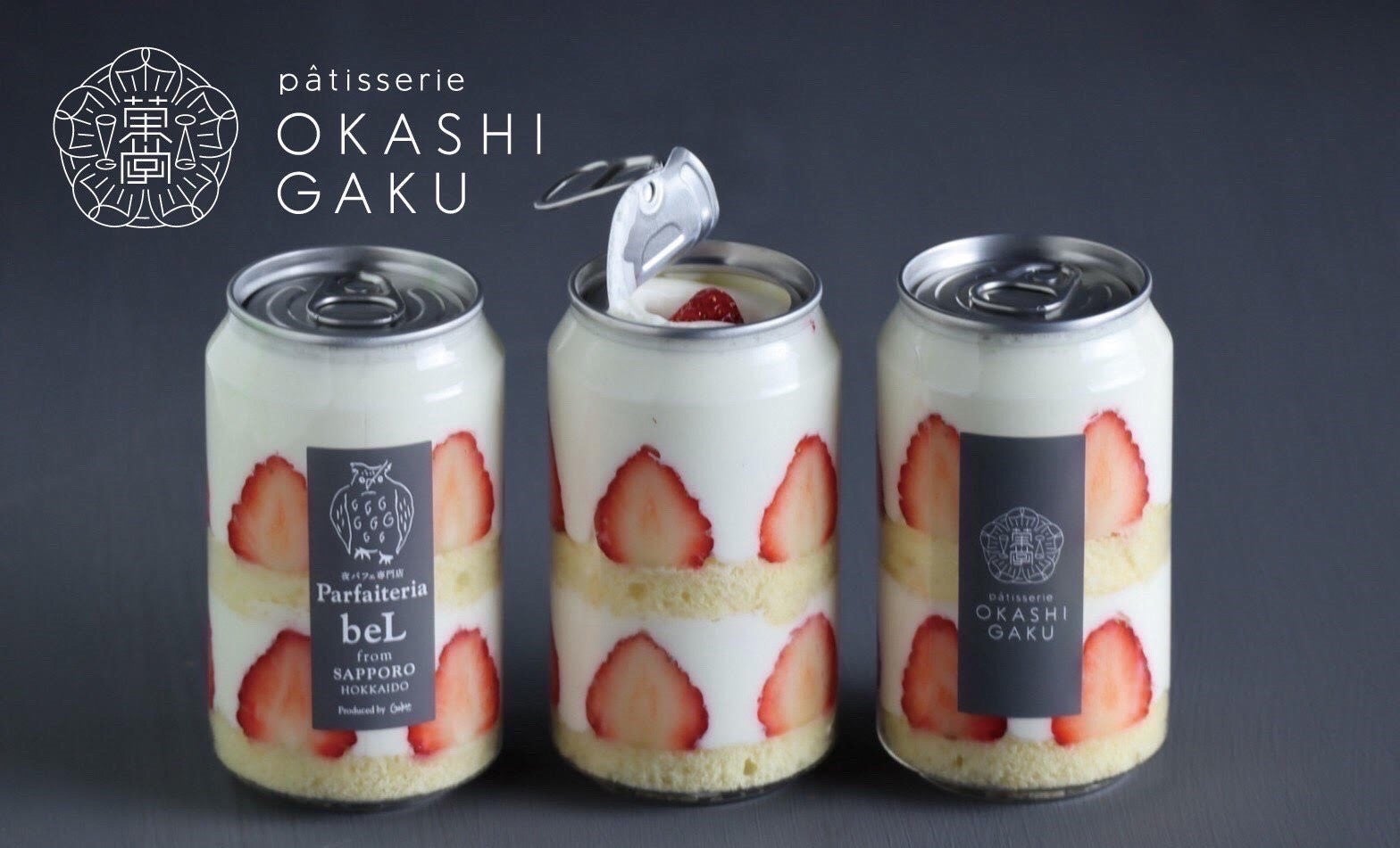 「夜パフェ専門店 Parfaiteria PaL(パフェテリア パル)」の新業態であるケーキ店「pâtisserie OKASHI GAKU(パティスリー オカシ ガク)」は昨年7月に札幌すすきのエリアにオープン。店舗前に設置された自動販売機で買えることで話題の缶入りケーキを販売します。北海道産の新鮮な生クリームとスポンジケーキのバランスにこだわった味はもちろん、見た目もかわいらしく、持ち運びしやすいことでも人気です。