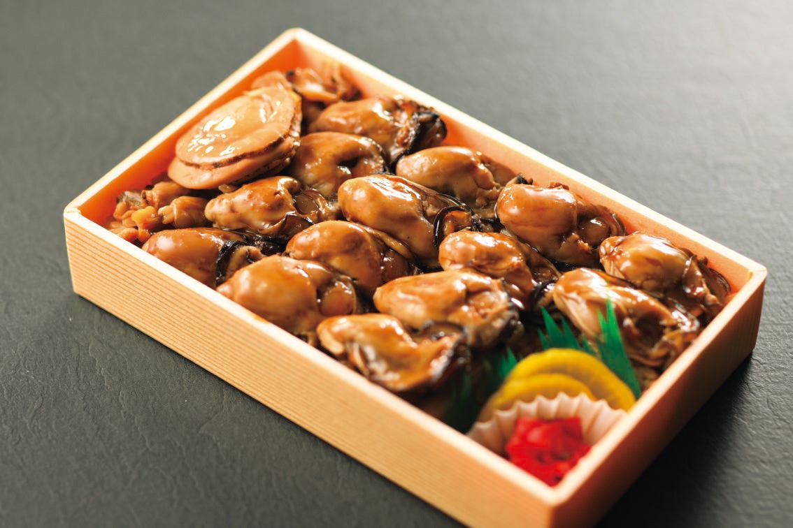 北海道・厚岸駅の名物駅弁「氏家かきめし」。北海道産のカキを通常の氏家かきめしの3.5倍の量を盛り付け、さらにホタテ、アサリ、ツブ貝をぎっしり詰め込んだ豪快弁当です。