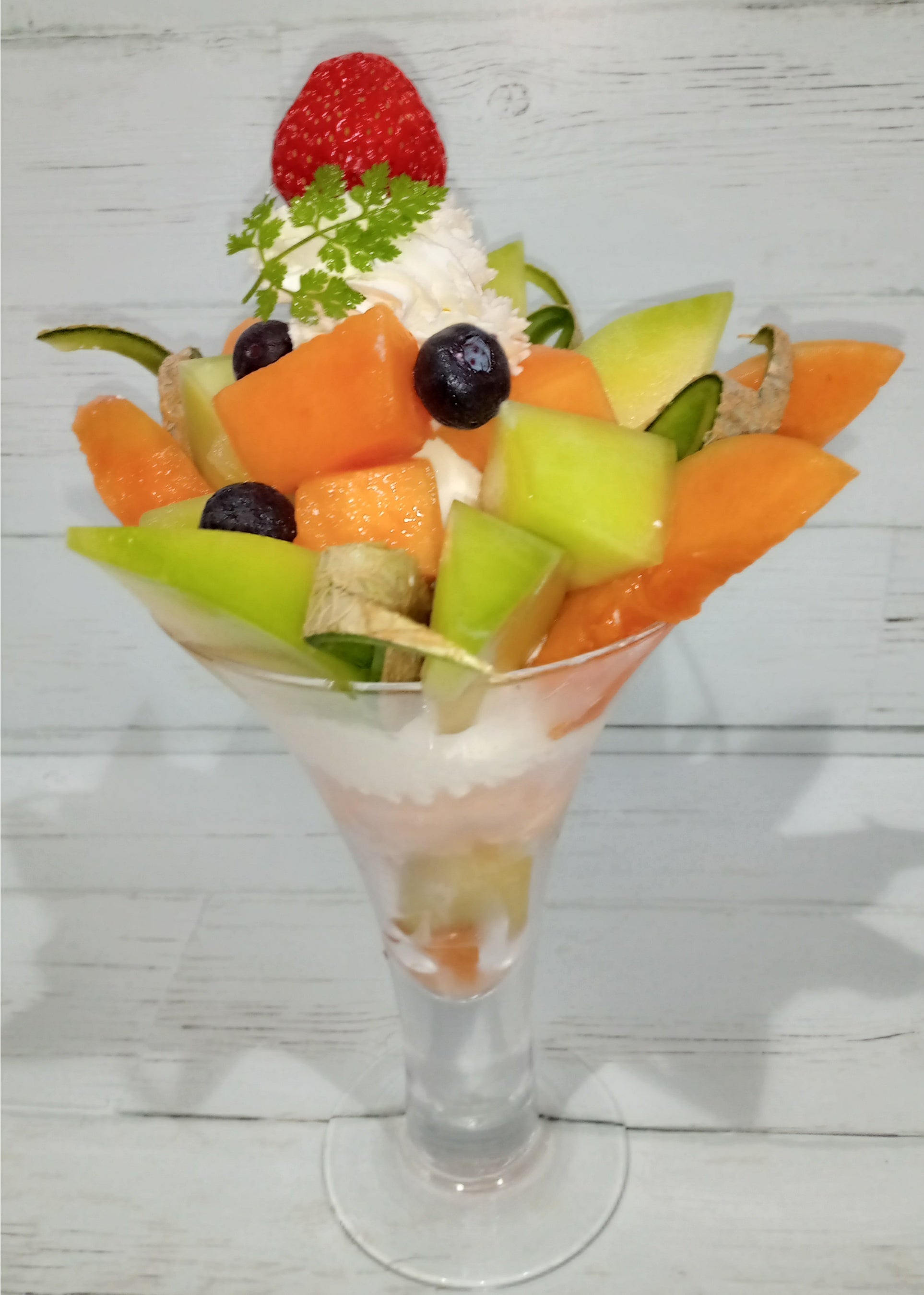 「青・赤肉メロンのご褒美パフェ」 (1カップ) 2,200円 各日30食販売予定京王百貨店限定販売