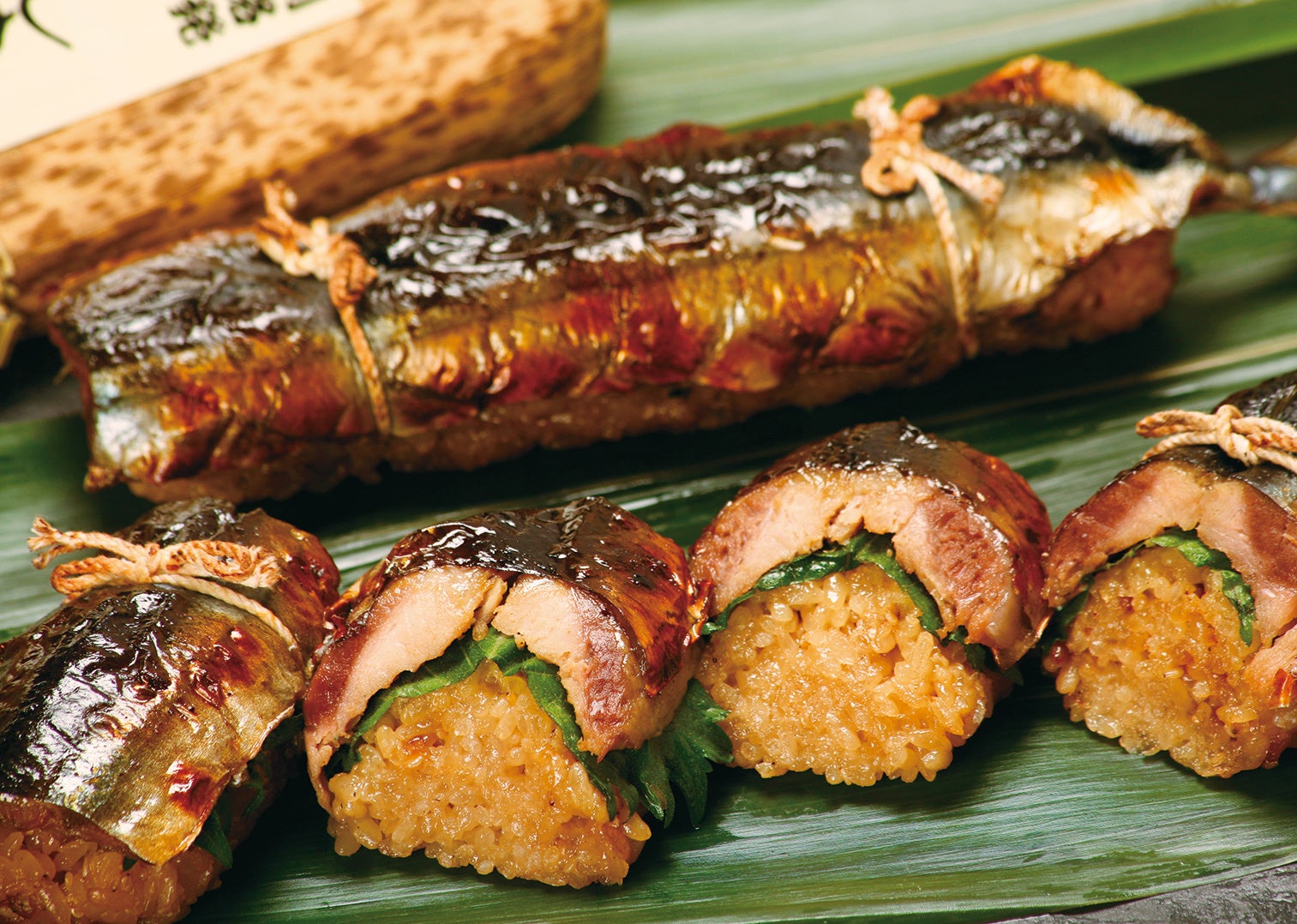 希少な北海道産サンマを贅沢に一本まるごと使用。骨を取り除き自家製のタレに付け込んだサンマにもちっとしたおこわを合わせて炭火で焼いた「さんまんま」を実演販売します。