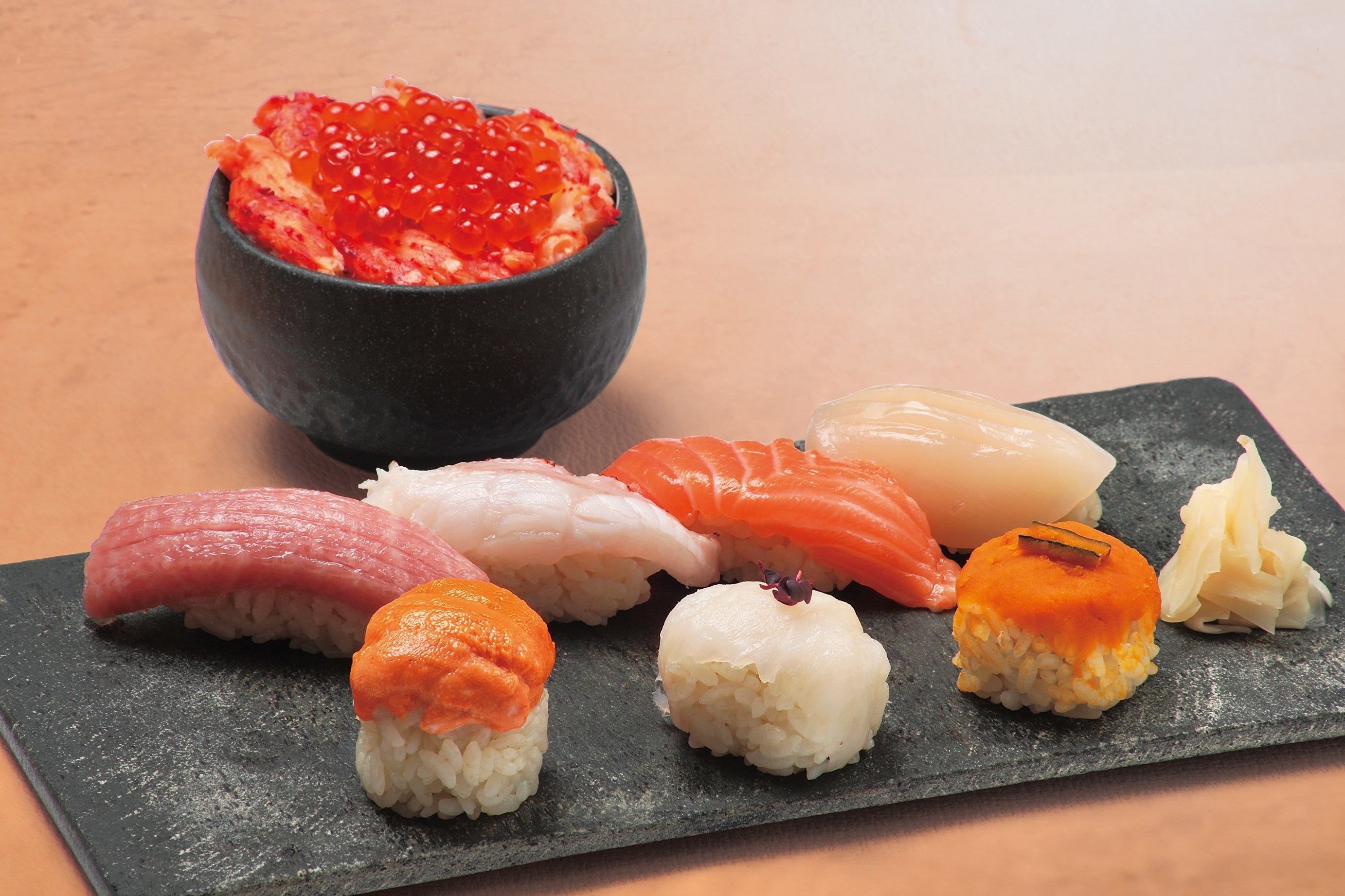 北海道の旬の海鮮が堪能できると好評の寿司店「鮨処 竜敏」。北海道産キンキの握り、松川カレイやカボチャを使用した手毬ずしなど握り7貫と北海道産花咲カニや生イクラをの小丼が楽しめる特別セットを展開します。