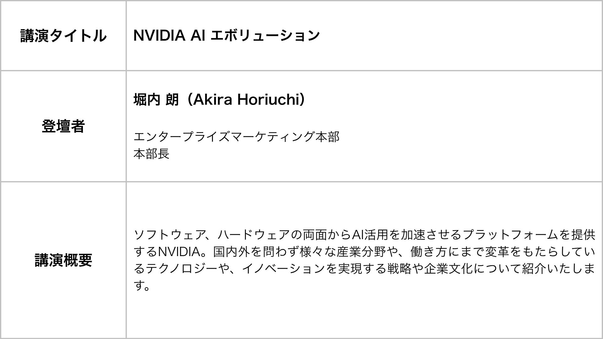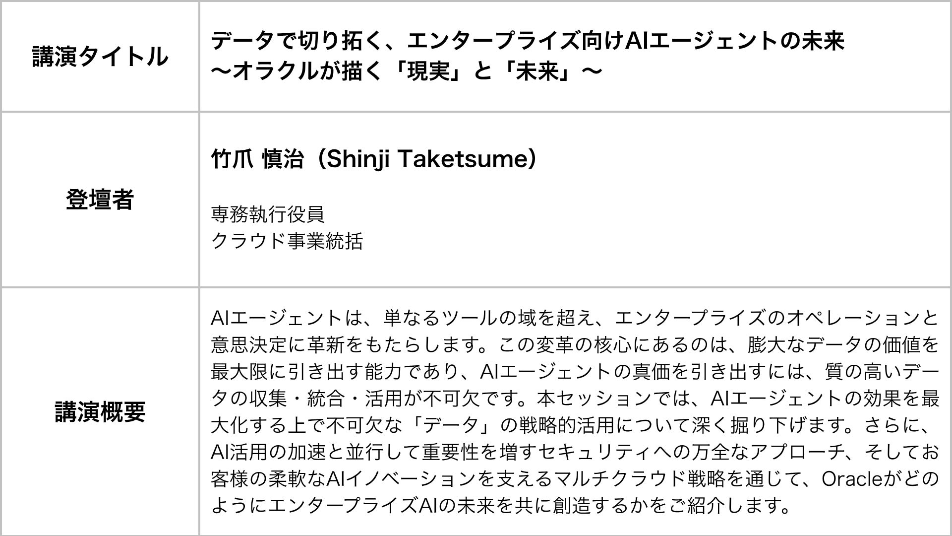 そして今回、この稀有な機会をさらに特別なものとするため、NVIDIA、そして日本オラクルの登壇が決定いたしました。世界のAI開発を支える視点から、エンタープライズAIエージェントの未来をお話いただきます。