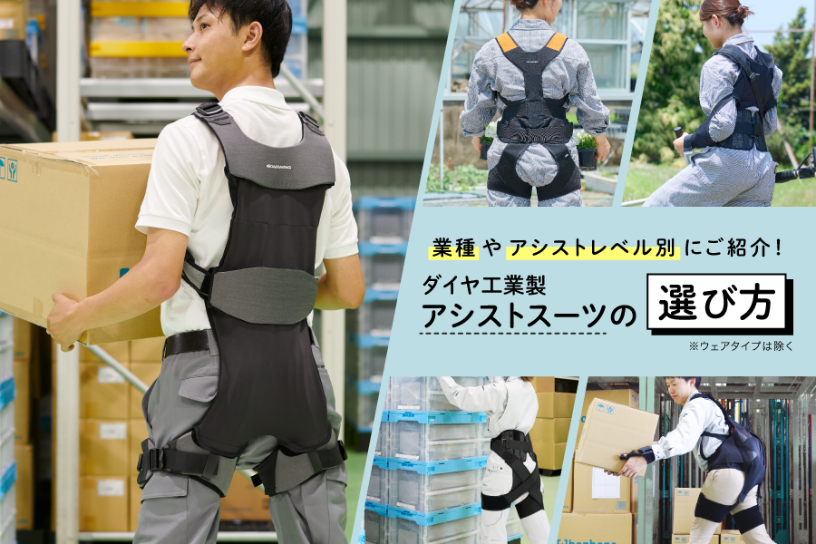 そこで今回、アシストスーツの主な機能やダイヤ工業製 アシストスーツの違い、どういった職種や動作におすすめなのか製品別にご紹介するページを作成いたしました。
