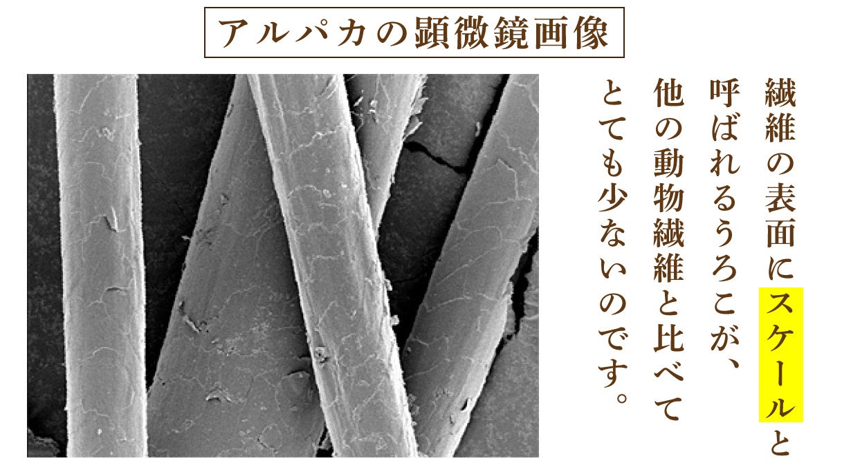 アルパカの特殊な毛の構造により、繊維の内側中央部分に空洞があり温かい空気を溜められます。