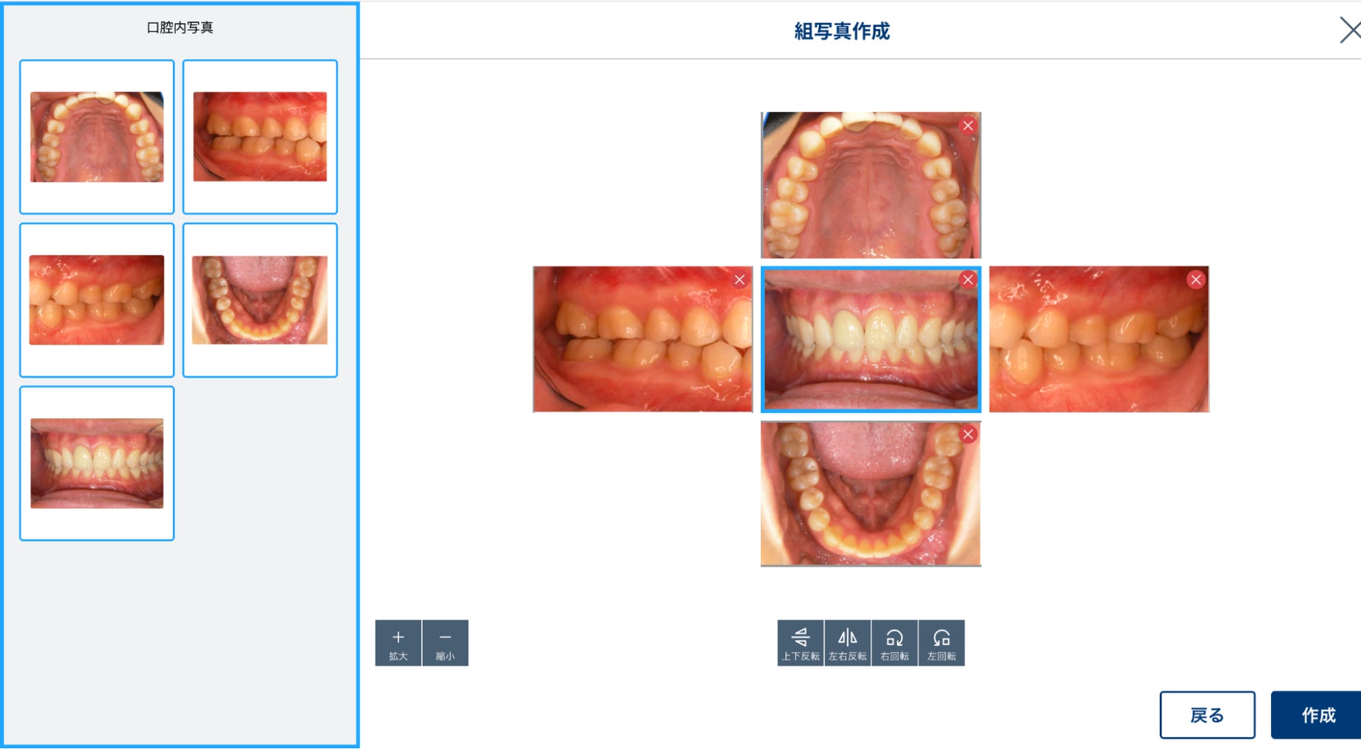 口腔内写真やレントゲン写真をドラッグ&ドロップで組写真に自動整列ができる「組写真作成機能」を追加しました。規格が統一された見やすい資料の作成が可能です。