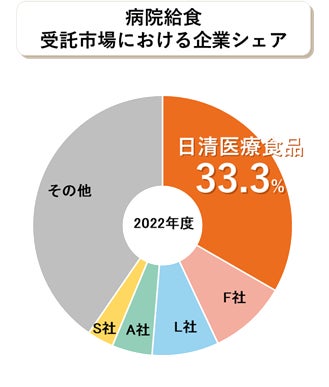 *日清医療食品の受託施設数、ならびに病院給食の受託市場における企業シェア(2023年7月「給食受託シェア・カバレッジ状況」)