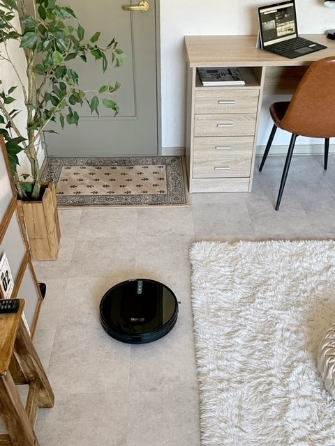 フローリングだけじゃなくてカーペットの段差にも対応してくれるし、73mmの厚さだから普段手の届かないソファやベットの下にもすいすい入り込んでお掃除してくれるよ。めっちゃ感動*