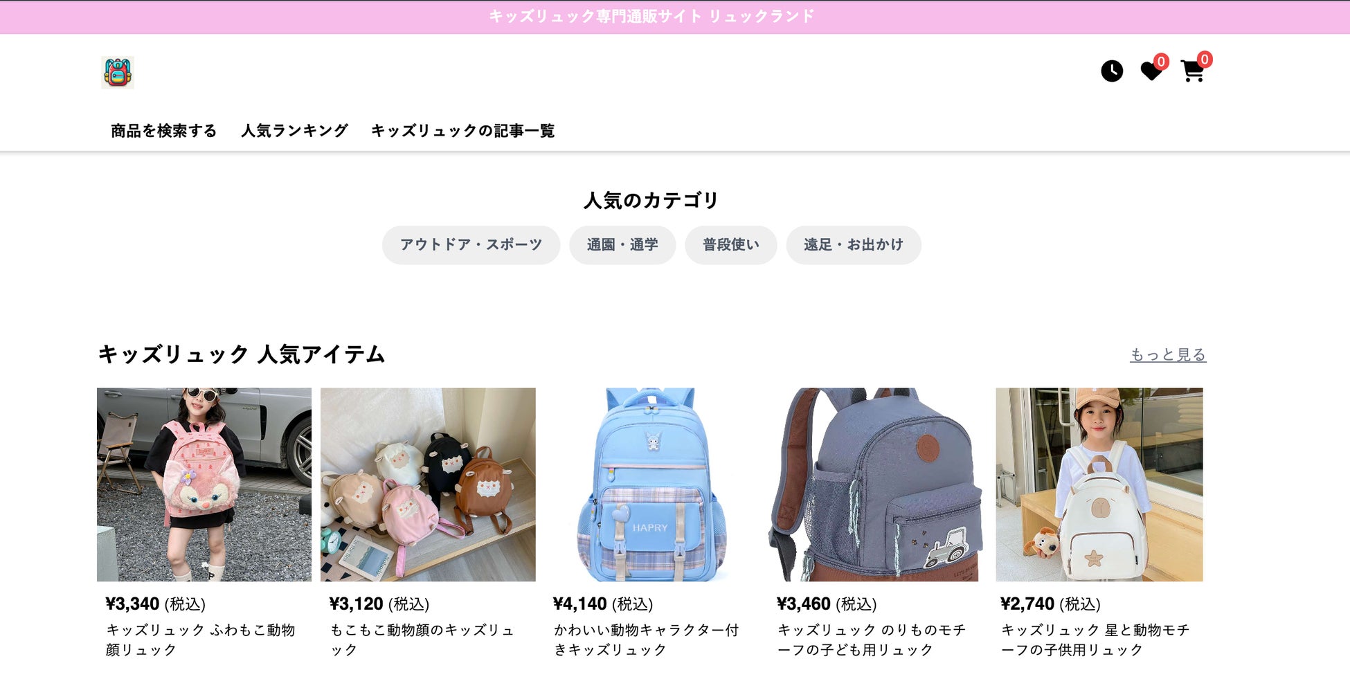子どもリュックを探すことに特化したECサイト。豊富な品揃えと細分化された商品写真で、子どもリュック探しがスムーズに。