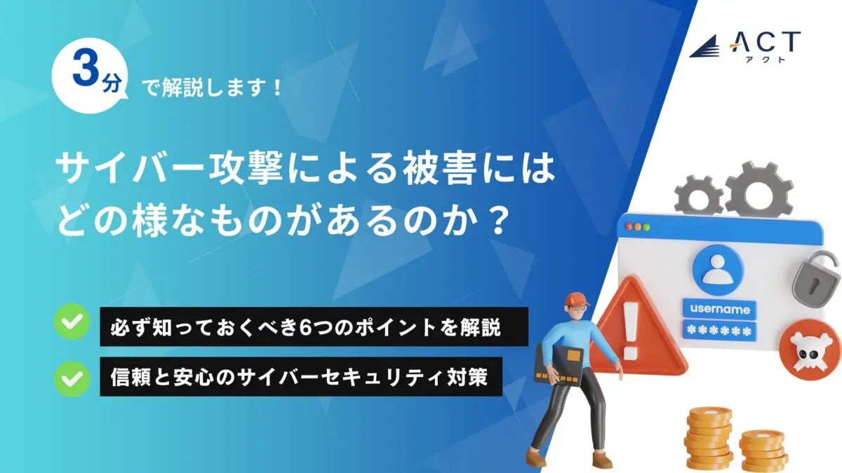 今年30周年を迎え、サイバーセキュリティ事業などを行う株式会社アクト(本社:東京都文京区、代表取締役CEO 小林 智彦 、以下 アクト)は【3分で解説!サイバー攻撃による被害にはどの様なものがあるのか?】のホワイトペーパーを公開しました。