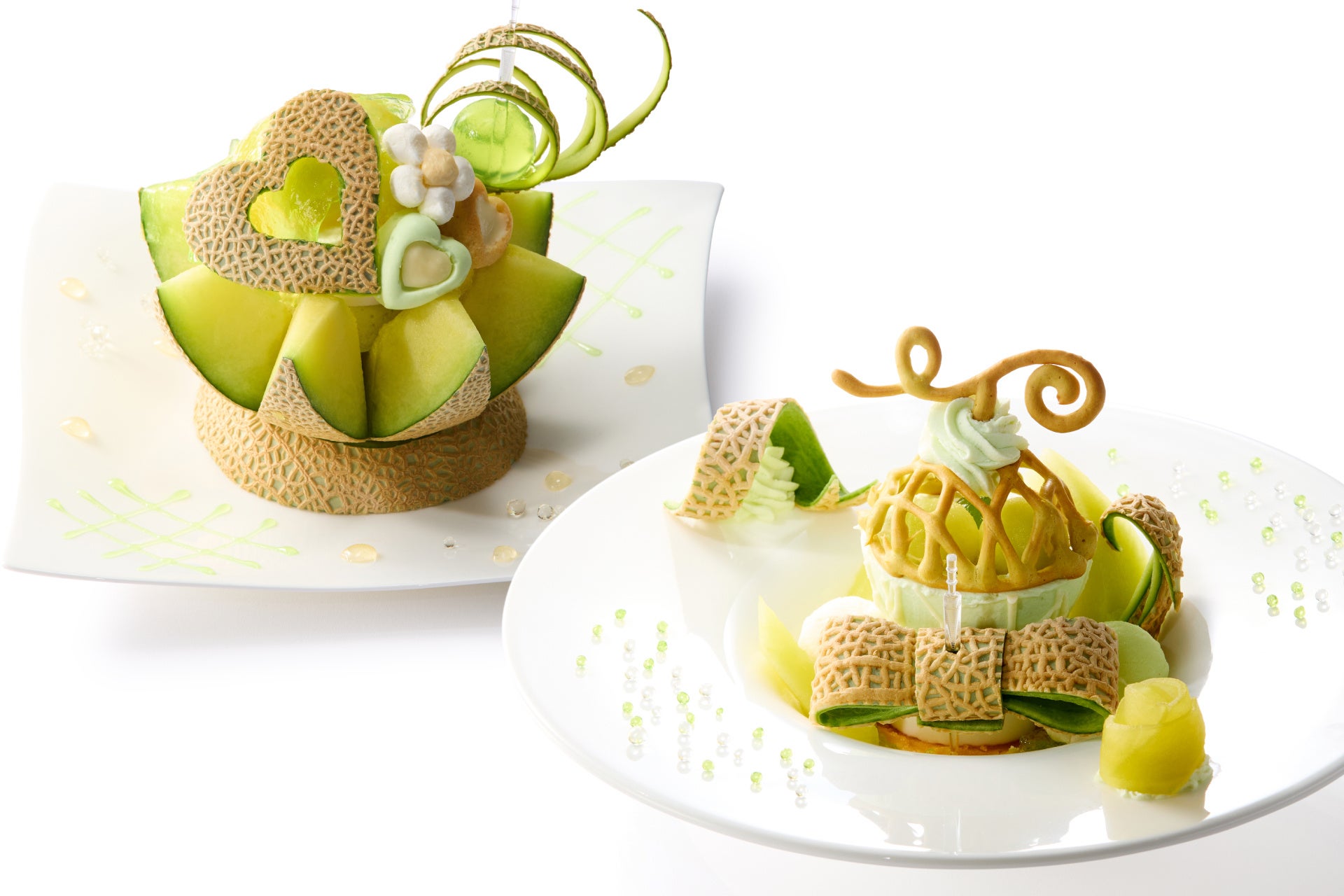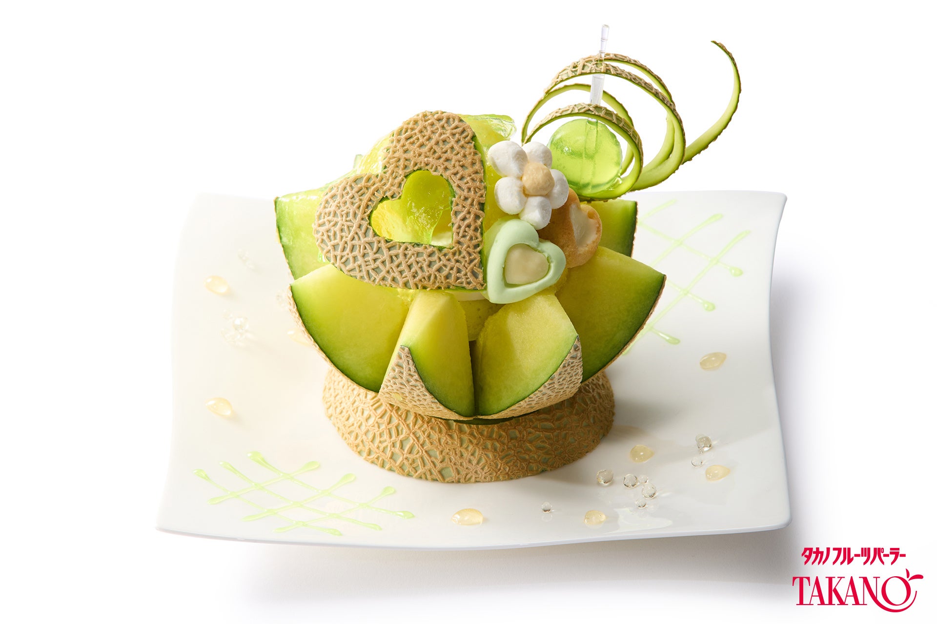 ハートやリボンが美しく飾られた、マスクメロンを味わう一皿