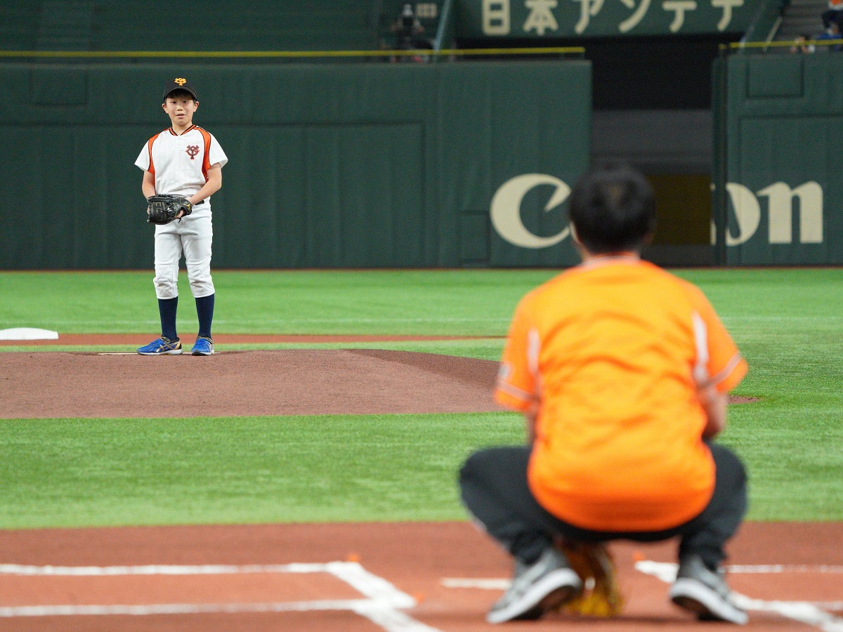 始球式にご参加いただける親子を募集します。親子バッテリー(お子様:ピッチャー、大人:キャッチャー)で一生に一度の思い出作りを東京ドームでしてみませんか。