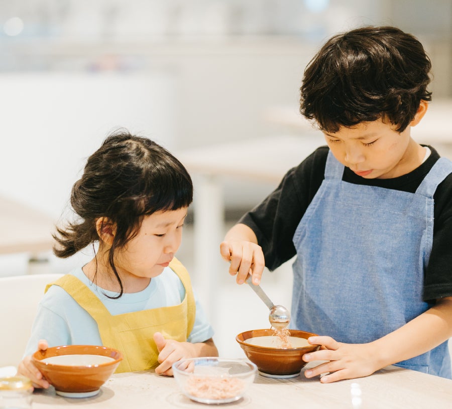 ららぽーと福岡内にある体験スペース「くばラボ」からの食育出張。だしドリルやだしふりかけづくりなど、お子様と一緒にお楽しみいただけます。