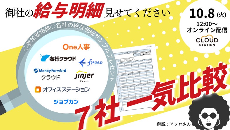 【10/8~25無料配信セミナー】人事・経理・総務のご担当者必見!7社の給与明細機能を一括比較できるセミナーへ登壇決定。