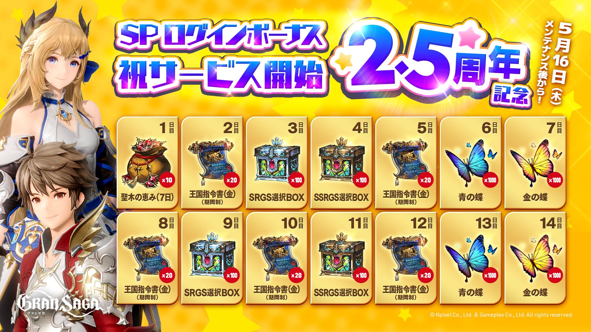 グランサガのサービス開始2.5周年を祝して、スペシャルなログインボーナスを実施中です!
