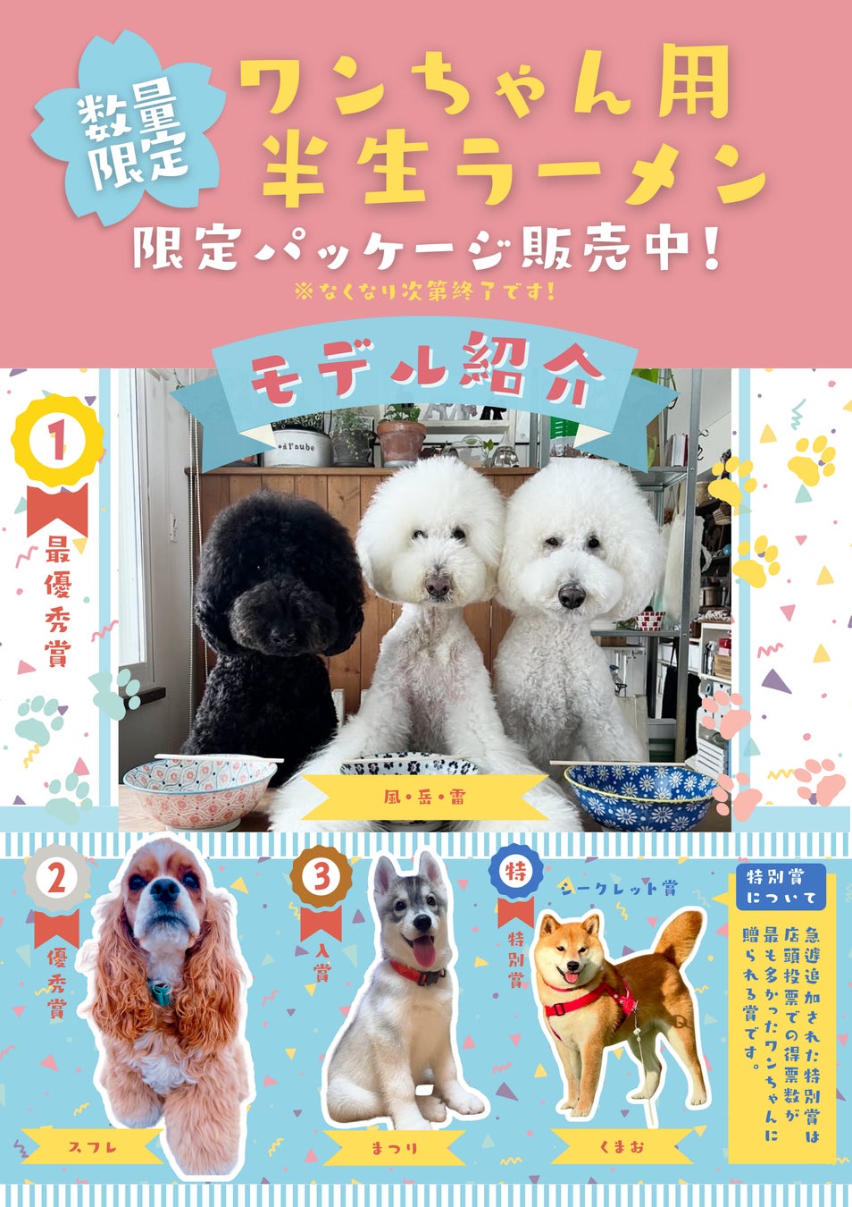 イベント当日より【人気商品】『ワンちゃん用半生ラーメン』の限定パッケージを販売します。