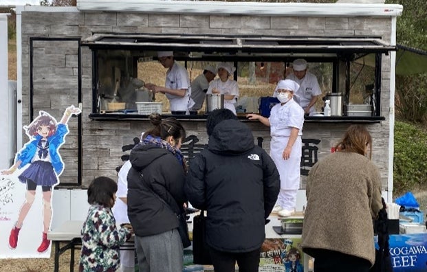 当日は、丸亀製麺店舗の麺切機やゆで釜を完備したキッチンカーがみとろの丘に来園し、「手づくり・できたて」の“加古川和牛”肉うどんを提供いたしました。またその他にもコーヒーや焼き菓子、チキンバーガーなどのキッチンカー、射的のお店も出店し、賑わいを見せました。