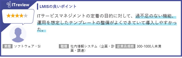 コメントの詳細はこちら:https://www.itreview.jp/products/lmis/reviews