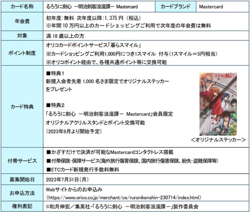 TVアニメ「るろうに剣心 -明治剣客浪漫譚-」とコラボレーションしたクレジットカード新登場!