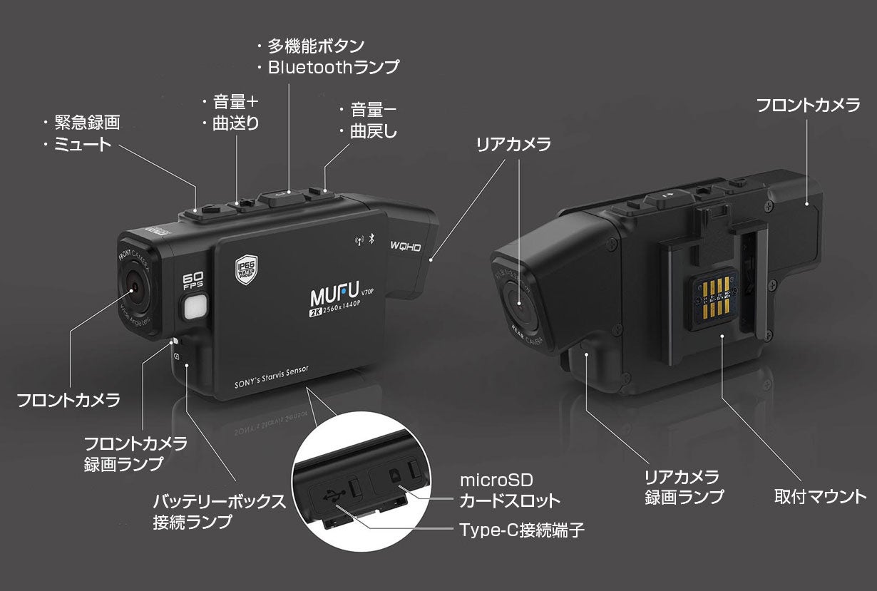 フロントカメラ/リアカメラ共にSONY STARVIS IMX335センサーを採用で2K高画質録画に対応。