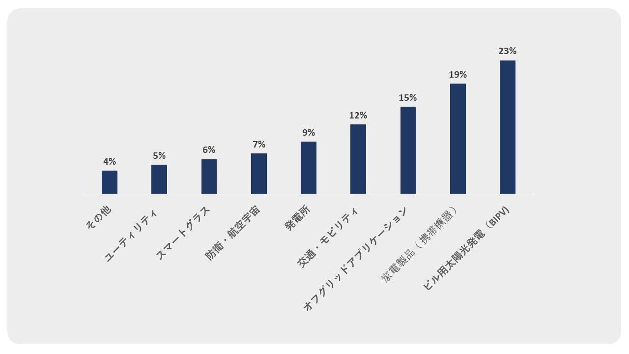ペロブスカイト太陽電池の中でも、建物一体型太陽電池(BIPV)は、その急速な効率向上により、最も高い市場シェアを獲得しています。
