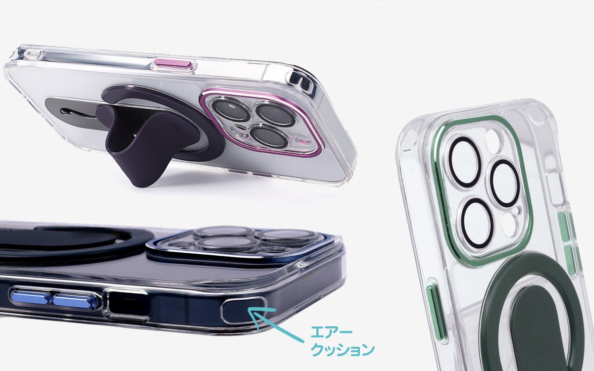 マグネットリングを搭載しており、ケースをつけたまま、MagSafe充電などMagSafeアクセサリーを利用することができます。