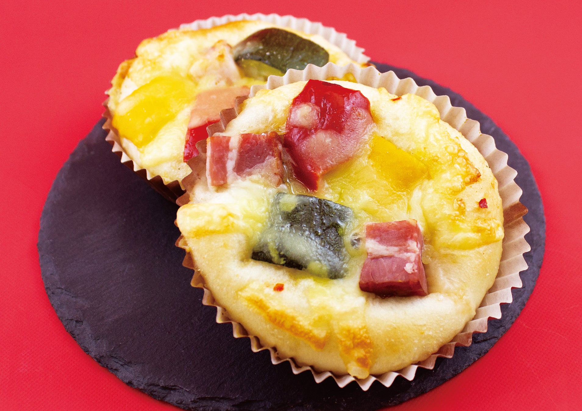 北海道産小麦を使用した生地にアヒージョソースとグリル野菜、ベーコンをトッピングし焼き上げました。オリーブオイルがジュワっとしみ込んだ生地と、野菜とベーコンのゴロっとした歯ごたえが楽しい、おつまみにもぴったりな一品です。