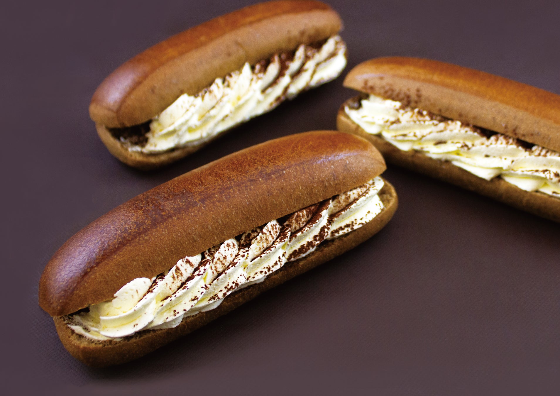 コーヒー入りのスイート生地を焼き上げ、仕上げにコーヒーシロップをぬりマスカルポーネチーズを使用したクリームをサンドしました。コーヒーの風味が染み込んだ生地はふんわりと食べやすく、ほのかな苦みとマスカルポーネのまろやかさがマッチしたスイーツパンです。
