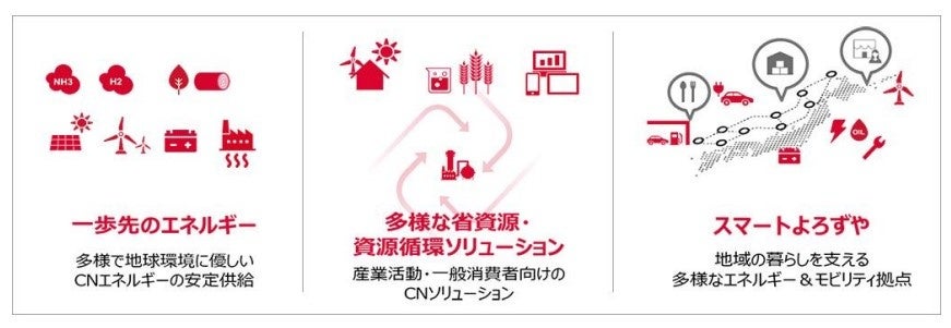 出光興産は 2022 年 11 月に発表した「中期経営計画(2023~2025 年度)」 https://www.idemitsu.com/jp/company/managementplan/index.html において、下記 3 つの事業領域の社会実装を通じ、事業ポートフォリオ転換を推進することを表明しました。
