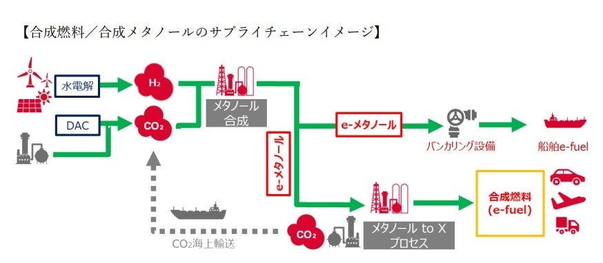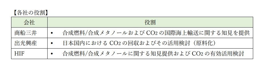 商船三井・出光興産・HIF が、 CO 2 の 海上 輸送を含む 合成燃料 e fuel)合成メタノール e methanol) の サプライチェーン共同開発 に関する MOU を締結